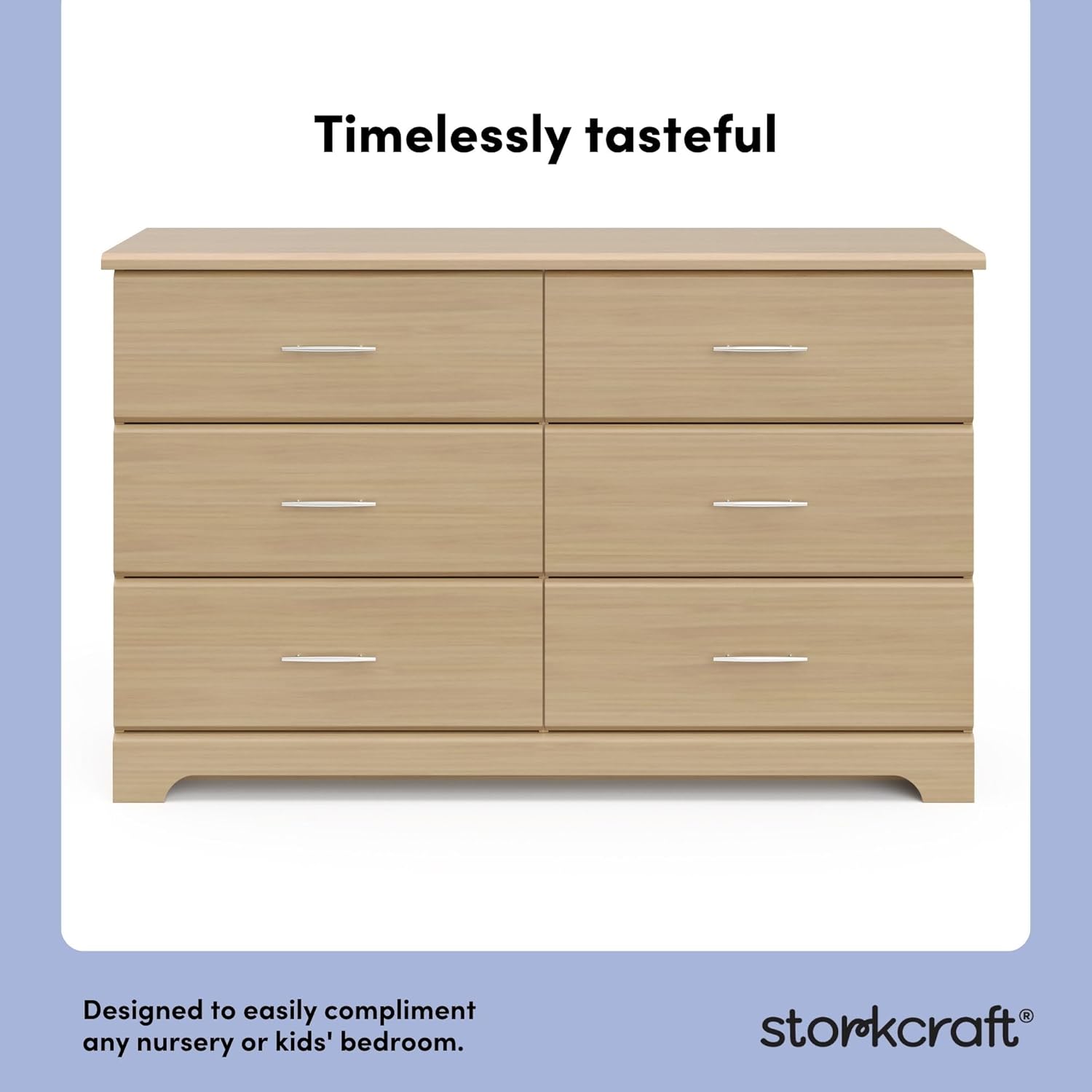 - MODERN, STYLISH 6-DRAWER DRESSER: This 6-drawer double dresser offers families a modern storage solution that is easy to match with any style of nursery or kids bedroom