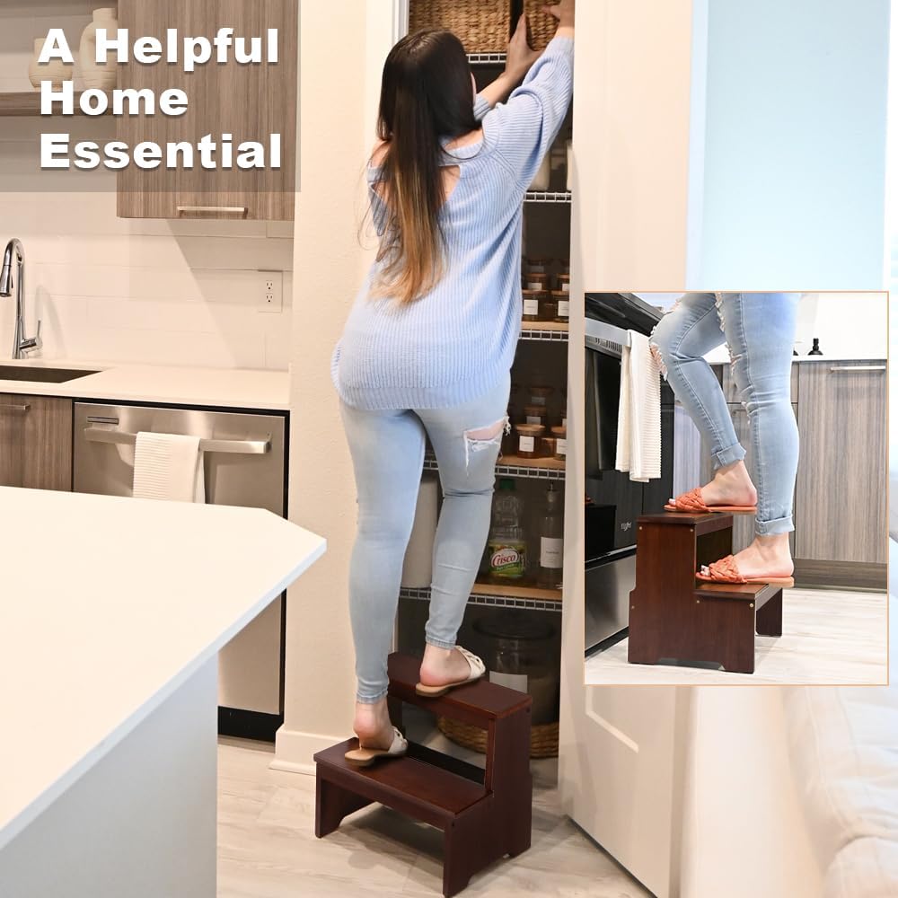 StrongTek Bamboo Two Step Stool for Adults and Kids, Bed Stepstool with Anti-Slip Bottom, Heavy Duty for Kitchen, Bathroom, Bedside Step Stool, Wooden Step Stairs 350 lbs Capacity (Dark Chocolate)