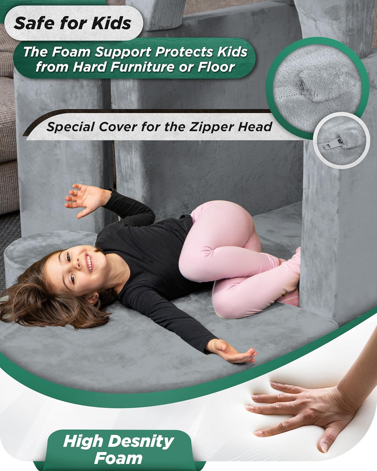 Lunix LX22 11pcs Modular Kids Play Couch, Child Sectional Sofa, Fortplay Bedroom and Playroom Furniture for Toddlers, Convertible Foam and Floor Cushion for Boys and Girls, Gray