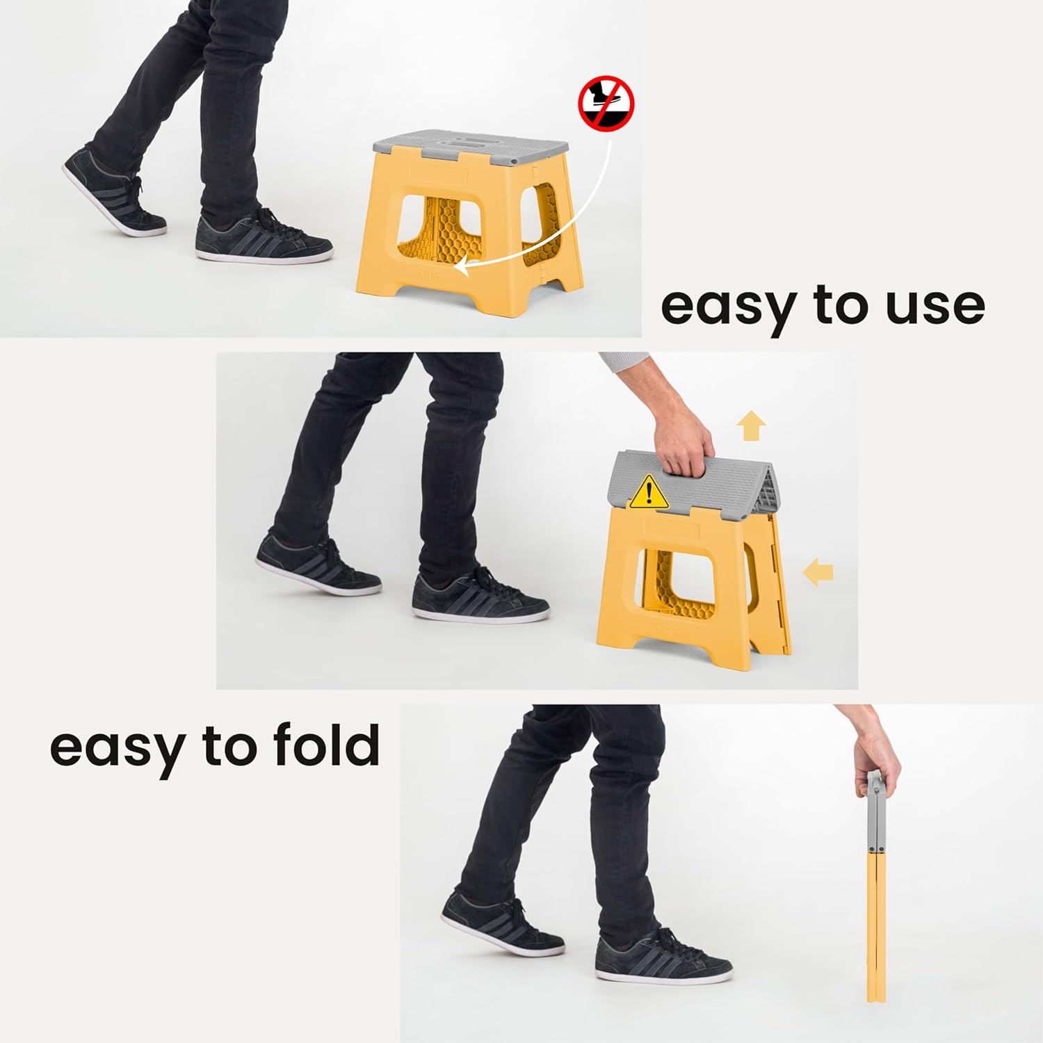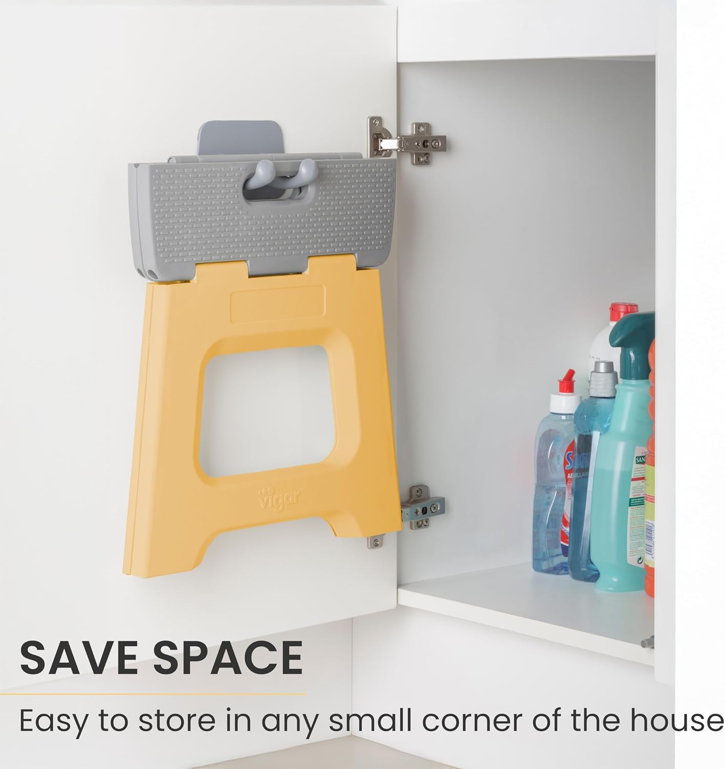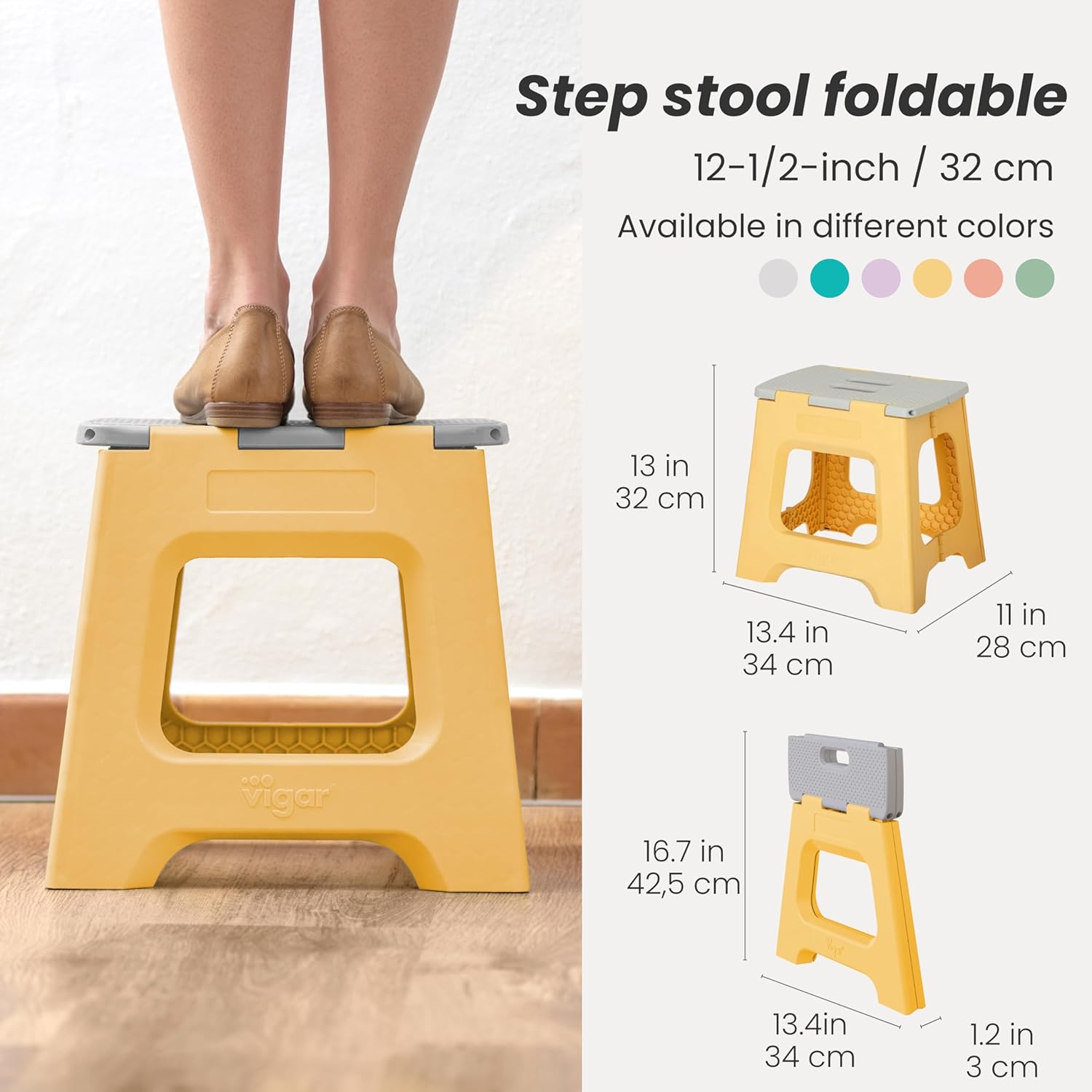 Vigar Compact Step Stool Foldable, 12-1/2-inch Step Stools for Adults up to 330 Pound, Lightweight Stool, Non-Slip Folding Step Stool, Spring Yellow