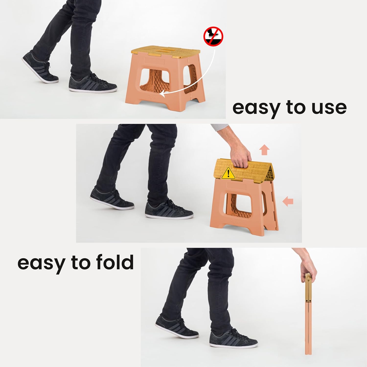 - Step Stool with Handle: The foldable stools for adults feature anti-slip grips, a durable textured base, and stabilizing rubber feet to prevent slipping. This ensures the foldable step stool stays securely in place and safe stepping stool for adults.