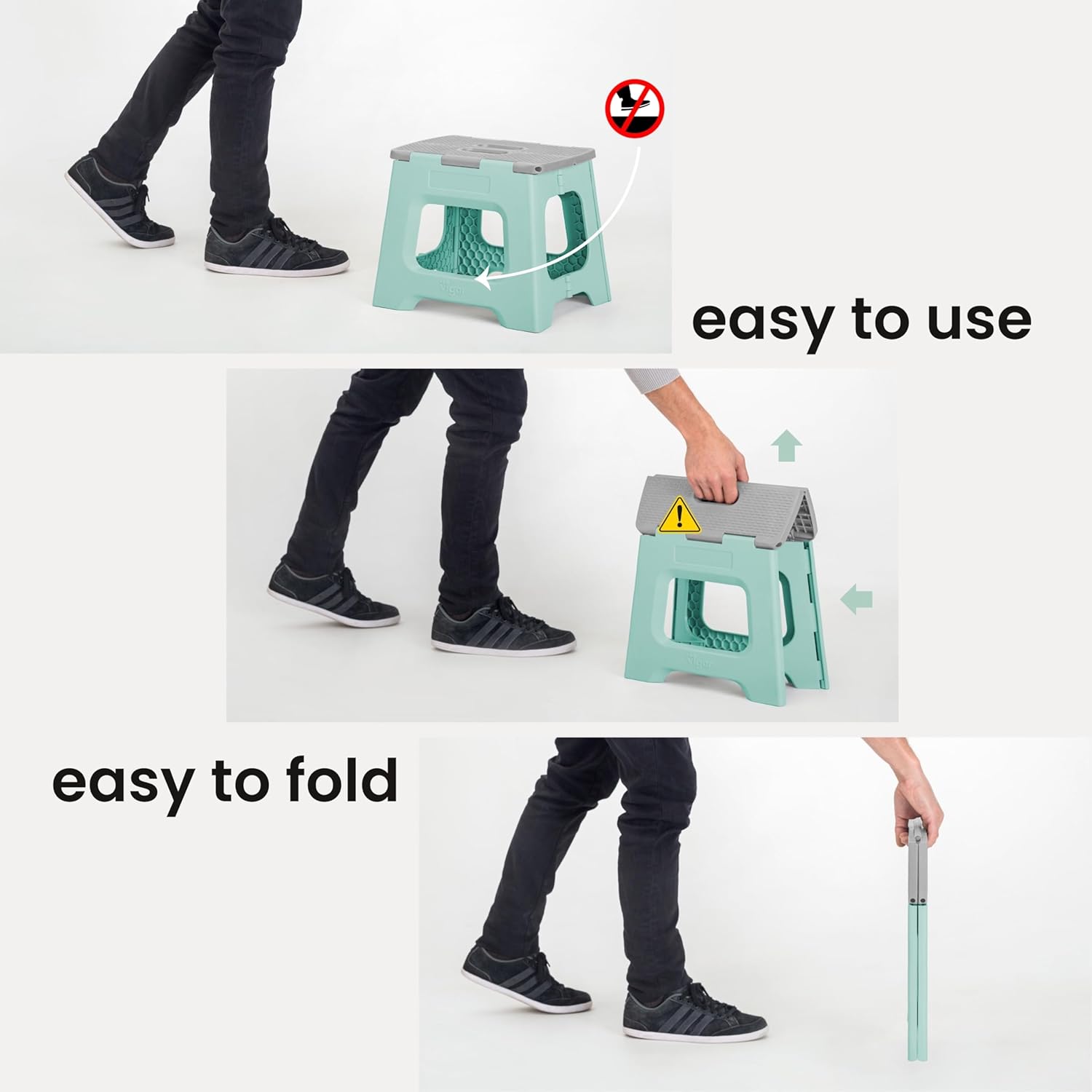 - Step Stool with Handle: The foldable stools for adults feature anti-slip grips, a durable textured base, and stabilizing rubber feet to prevent slipping. This ensures the foldable step stool stays securely in place and safe stepping stool for adults.