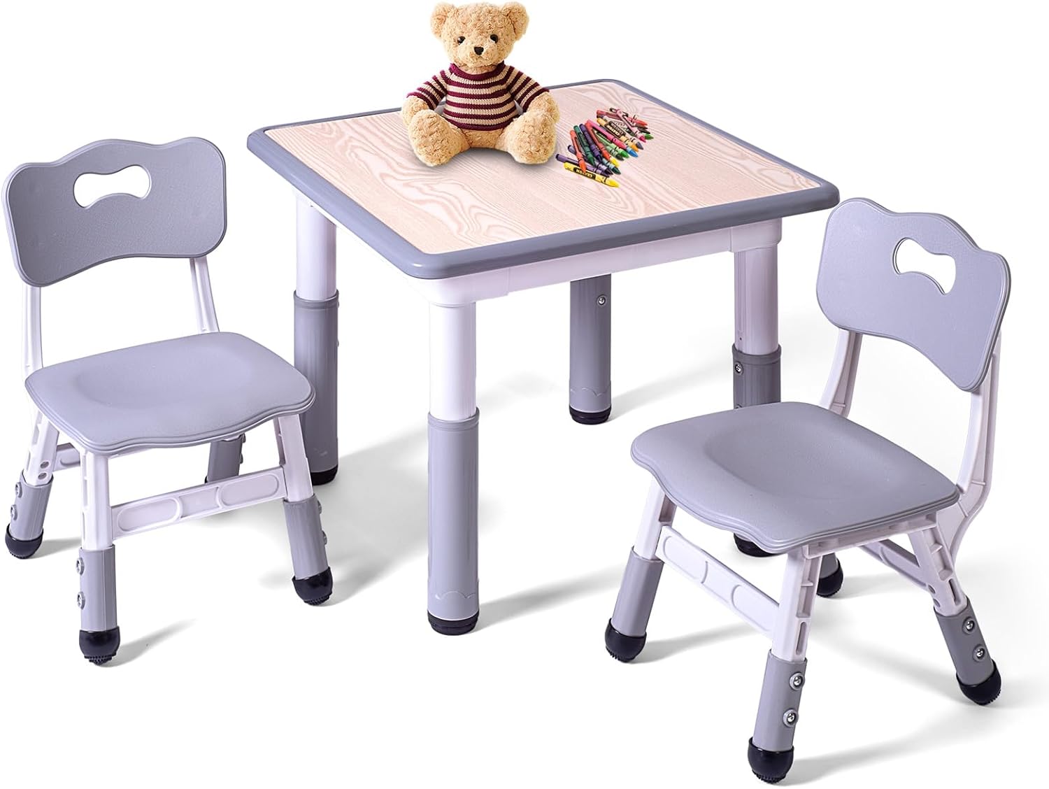Kids Table and 2 Chairs Set, Height Adjustable Toddler Study Table and Chair Set, Kid Size for Ages 3-8 Children, Graffiti Desktop, Easy to Wipe/Arts & Crafts, Homes/Classrooms/Daycare (Grey)