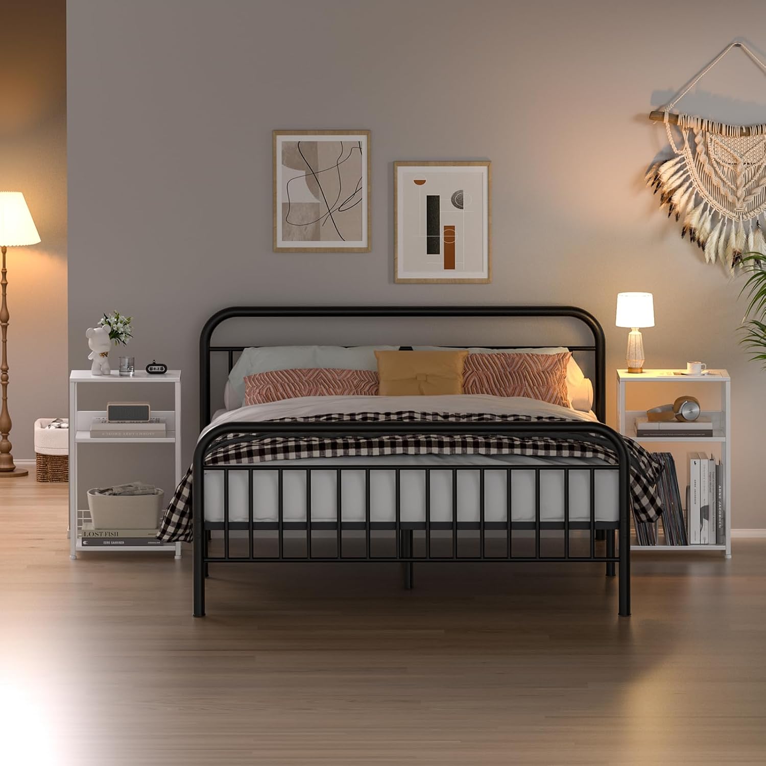 - [Pure White Minimalist Style] This industrial side table combines modern white wood grain with frosting metal stand. The overall white minimalist design brings a more sense of space and comfort to your room. The two detachable U-shaped dividers on the small end table provides you with more storage options. You can categorize your books on the bottom shelf, or choose a larger single storage space for your collections, plants etc.
