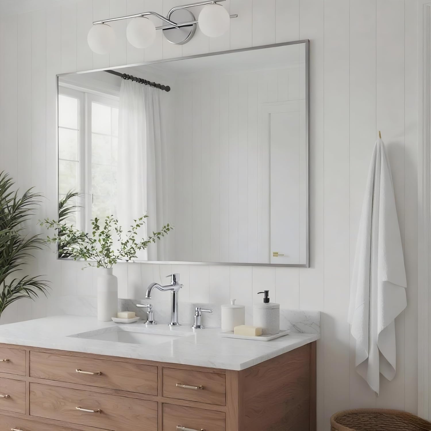27x36 Inch Nickel Bathroom Mirror for Wall, Aluminum Frame Rectangle Rectangular Vanity Mirror, Modern Large for Bedroom, Living Room, Horizontal or Vertical
