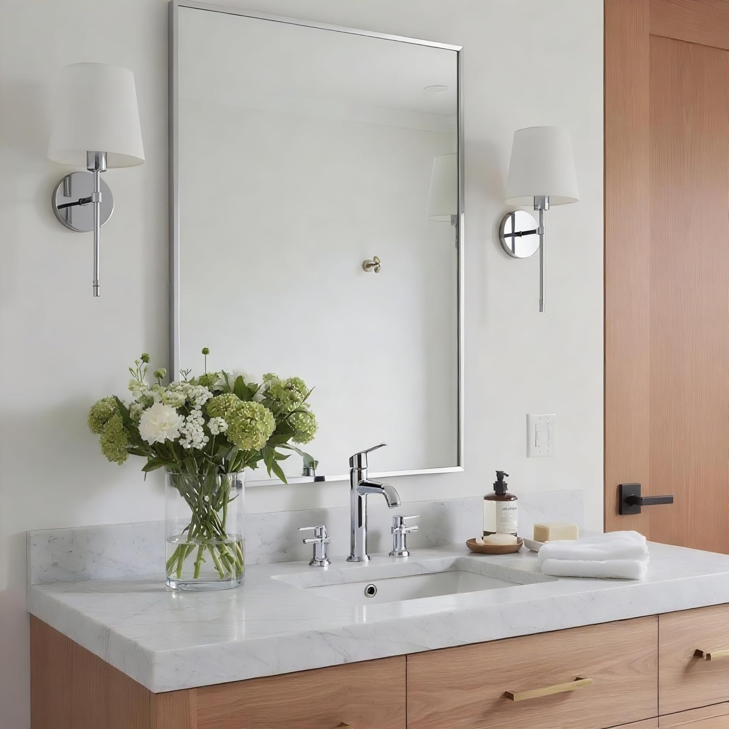 24x36 Inch Nickel Bathroom Mirror for Wall, Aluminum Frame Rectangle Rectangular Vanity Mirror, Modern Large for Bedroom, Living Room, Horizontal or Vertical