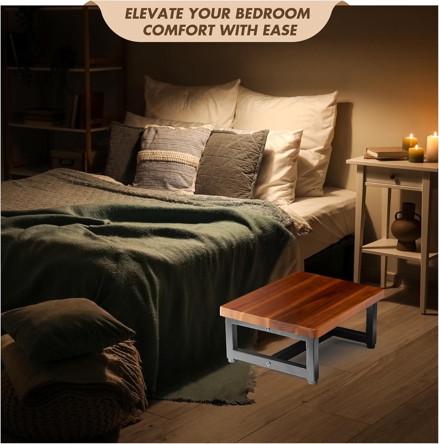 Wooden One Step Stool, Heavy Duty Step Stool for Adults & Kids, Supports up to 500lbs for Kitchen, Bathroom or Bedside Use (Acacia Wood)