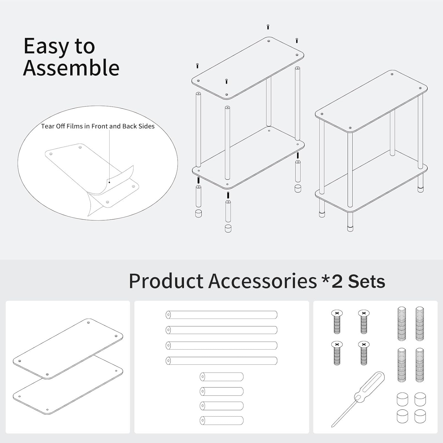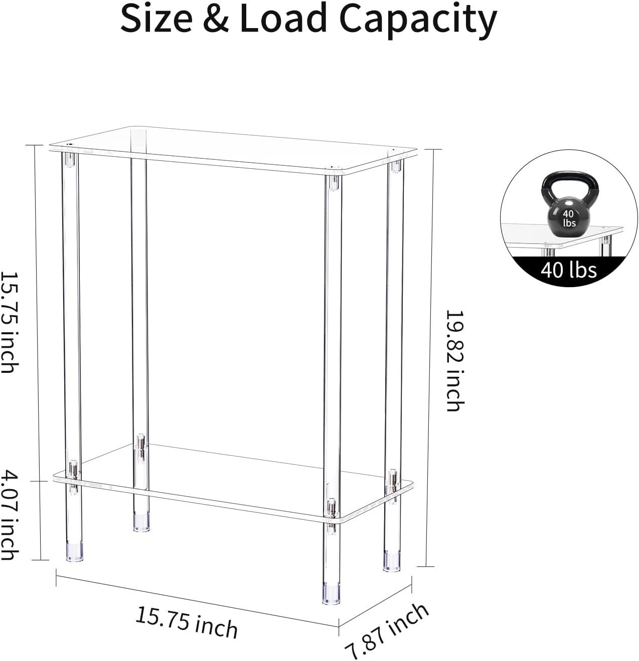 - 【Narrow Acrylic Side Table 2 Tier Rectangle Set of 2】The clear narrow end table is made of acrylic material that is smooth, transparent, high-strength, durable, lightweight, and easy to clean. The skinny nightstand table can hold up to 40 lbs.