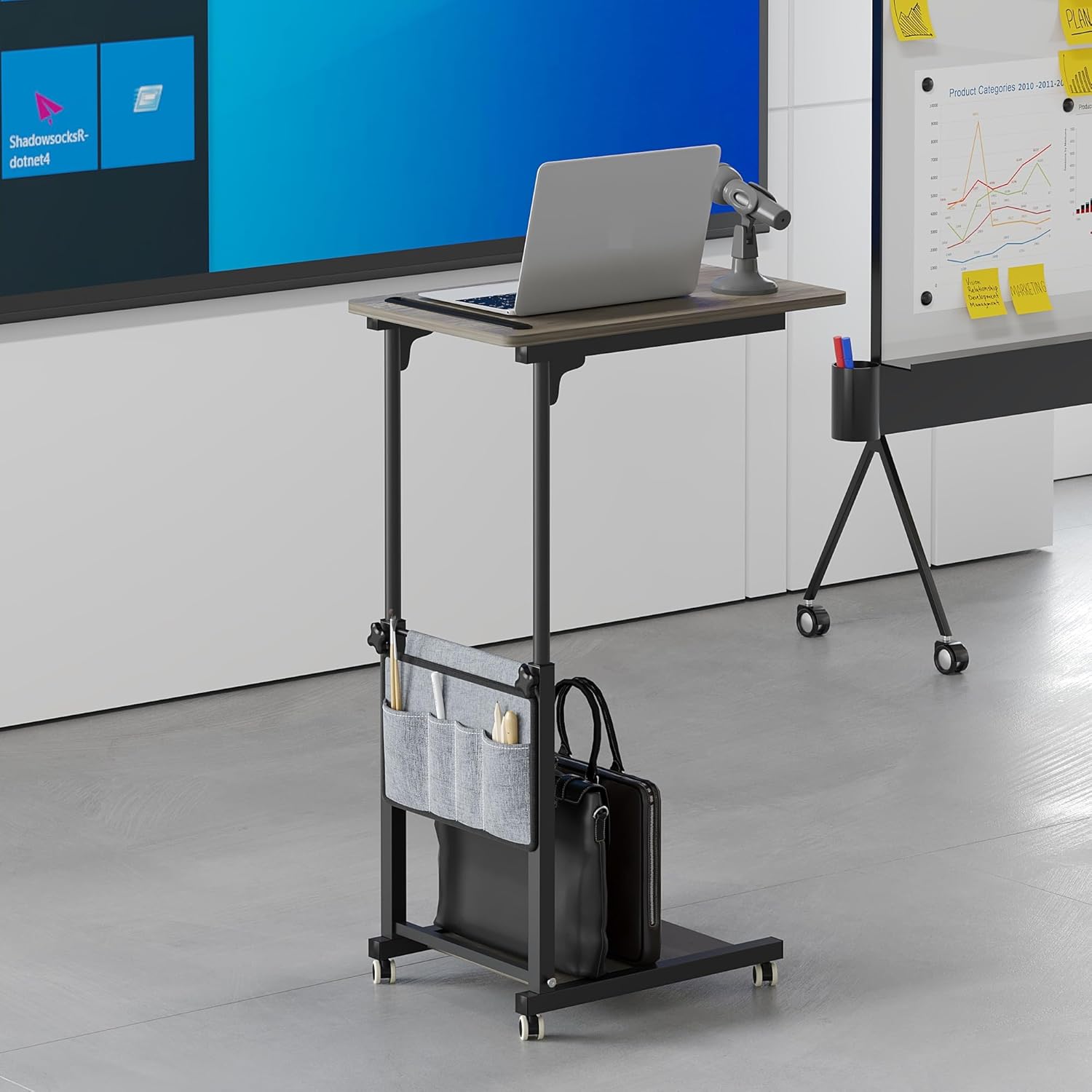 - 【STABLE】Constructed with a robust and stable frame and durable materials, this mobile standing desk is capable of securely accommodating a variety of items. It offers long-lasting stability and seamless mobility, making it a dependable choice for your work and daily routines.