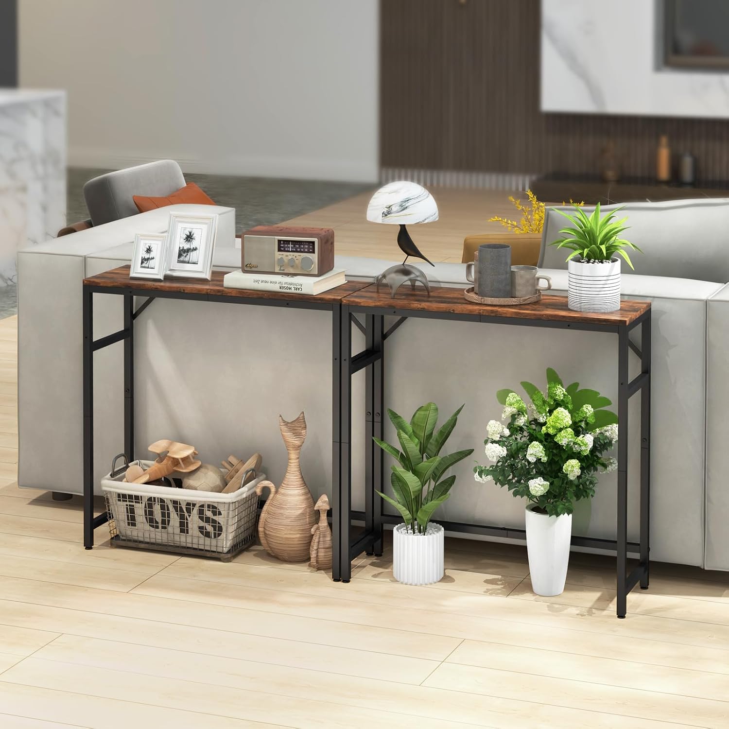 - MULTIFUNCTIONAL CONSOLE TABLE: The Livofloral small couch table can hold up to 80 pounds and can be used as a storage shelf, plant stand, side table, bookshelf, to organize clutter, place plants or decorations, and decorate your home.
