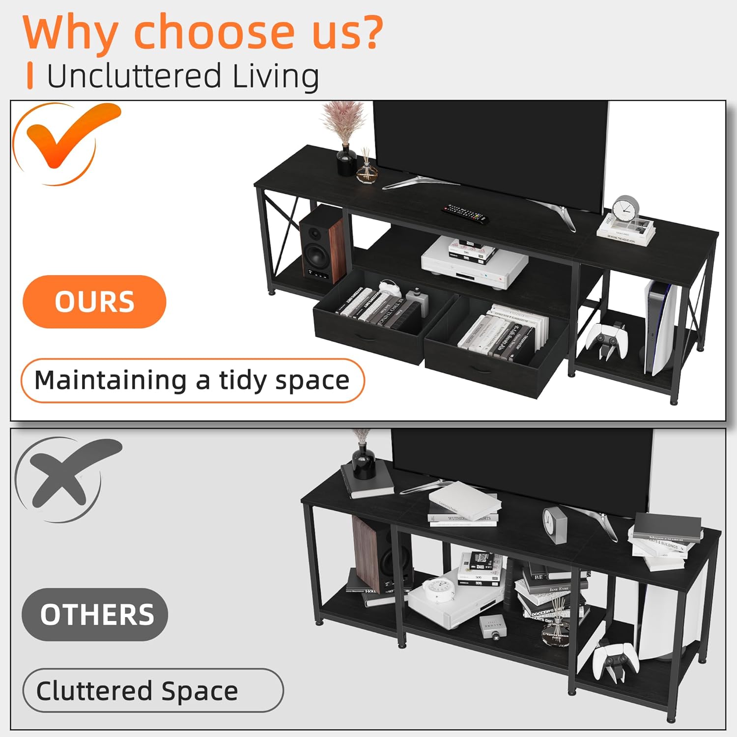 - 【Convenient 2-drawer storage】Featuring two spacious drawers, this TV stand offers a practical solution for storing and organizing various items, keeping them easily accessible yet safely out of reach of children, ensuring a clutter-free and child-friendly environment.
