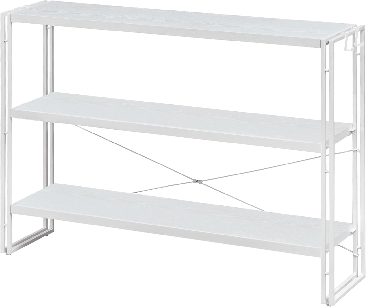 HCHQHS Bookshelf, 3-Tier Industrial Bookcase, White Open Book Shelf, Freestanding Horizontal Bookshelves with Metal Frame