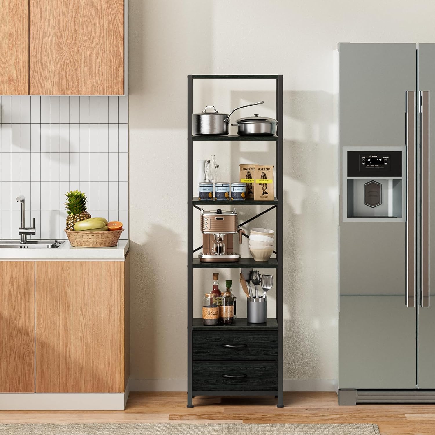 - 5-Tier Shelf & 2 Drawers: This bookshelf features multiple wood shelves to accommodate books, decor, and other items. The functional fabric drawers provide additional storage space for your personal items or office supplies, keeping your space organized and clutter-free.