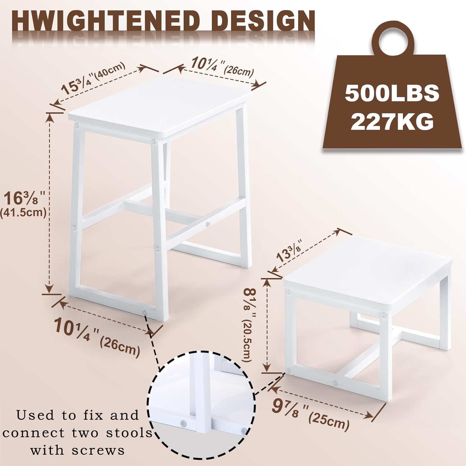 2 Step Stools for Adults Kids, Anti-Slip Sturdy Wooden Foot Stools with 500 Lbs Capacity for High Beds,Closet, Bathroom,Kitchen, Potty Training