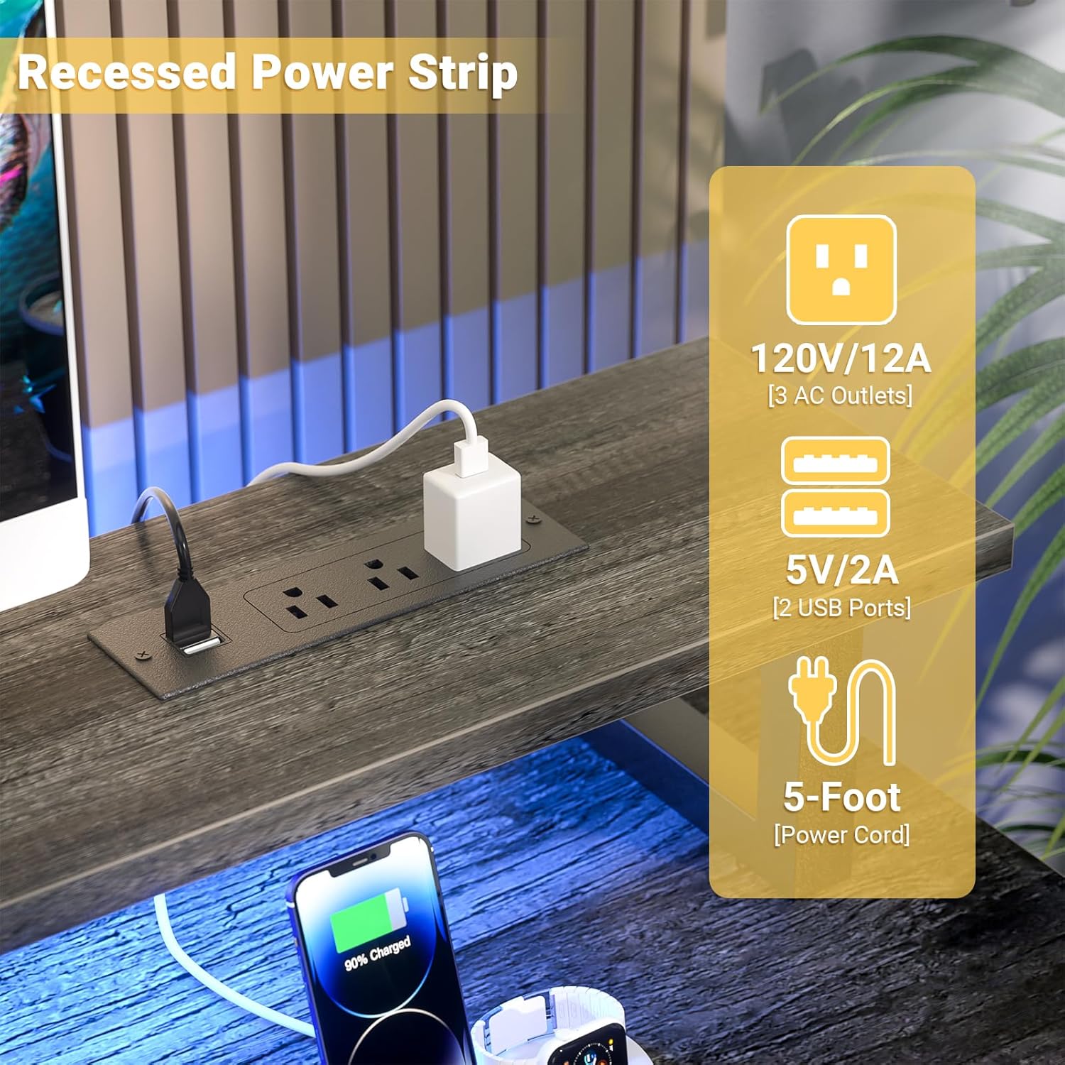 - ใ๐๐๐ฆ๐ข๐ง๐ ๐๐๐ฌ๐ค ๐ฐ๐ข๐ญ๐ก ๐๐๐ ๐๐ข๐ ๐ก๐ญ๐ฌใThe gaming desk comes with smart RGB LED lights features over 60000 colors and 29 flashing modes, which enables you to customize brightness, color, mode, and timer settings. With Led music sync function and built-in sensitivity adjustable mic, creating a romantic and energetic atmosphere for gaming.