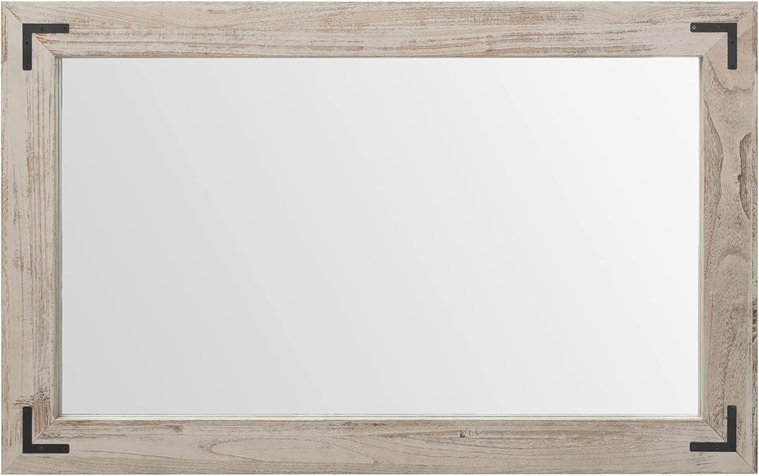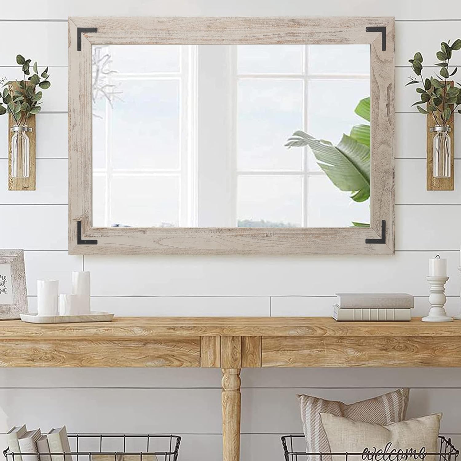 - RUSTIC WOOD VANITY MIRROR: Vanity mirror brings rustic character to any wall, while a black metal mount gives this design a modern farmhouse twist. Introduce a rustic touch to your farmhouse bathroom with this rustic wall mirror, a perfect pick for modern-farmhouse-inspired spaces.