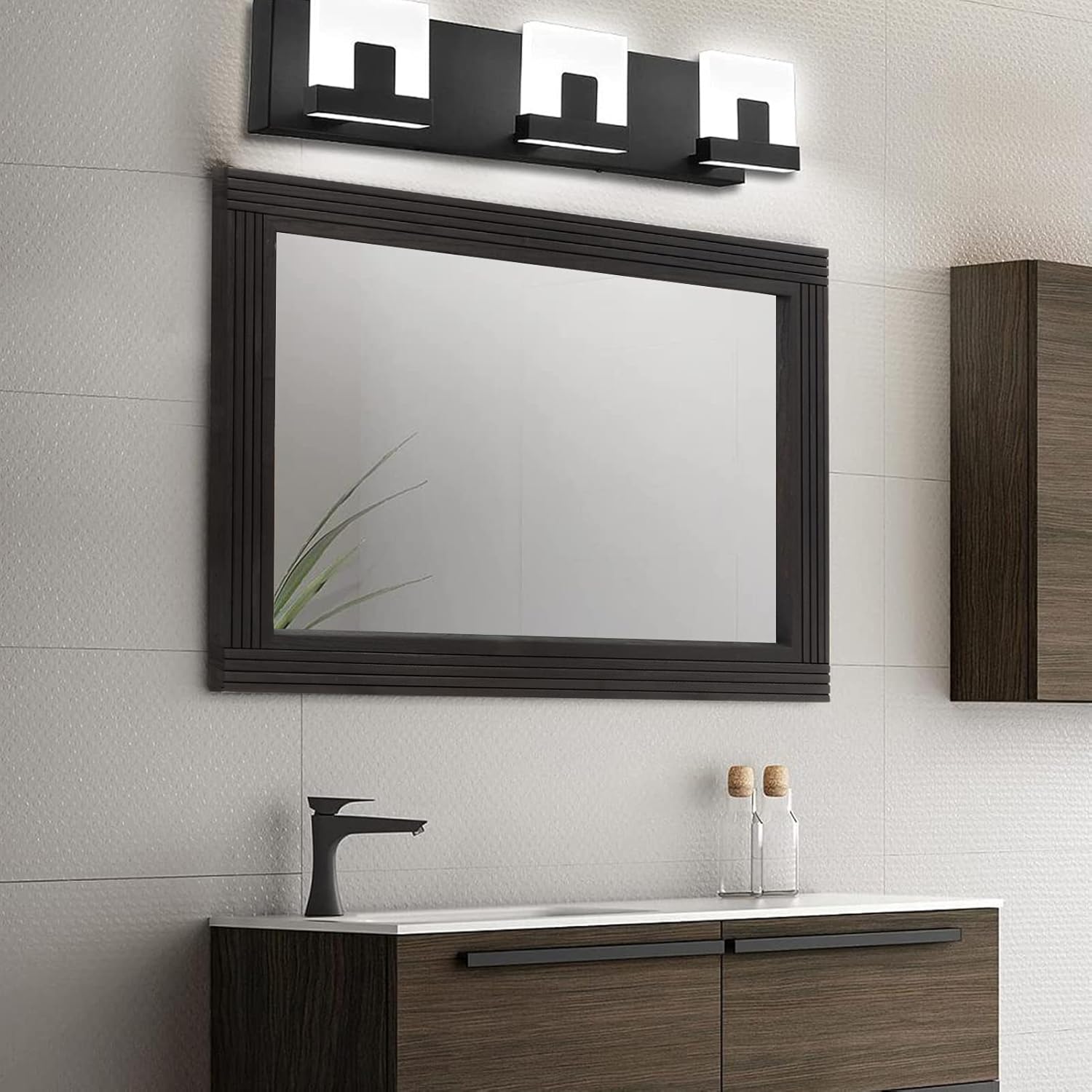 - Quality Craftsmanship-- Mirror: This mirror is constructed of authentic 5mm silver backed glass which is explosion-proof and scatter prevention. Backplane: The backplane provides a double layer of protection. Premium MDF backing is well protected against moisture, perfect for bathroom.