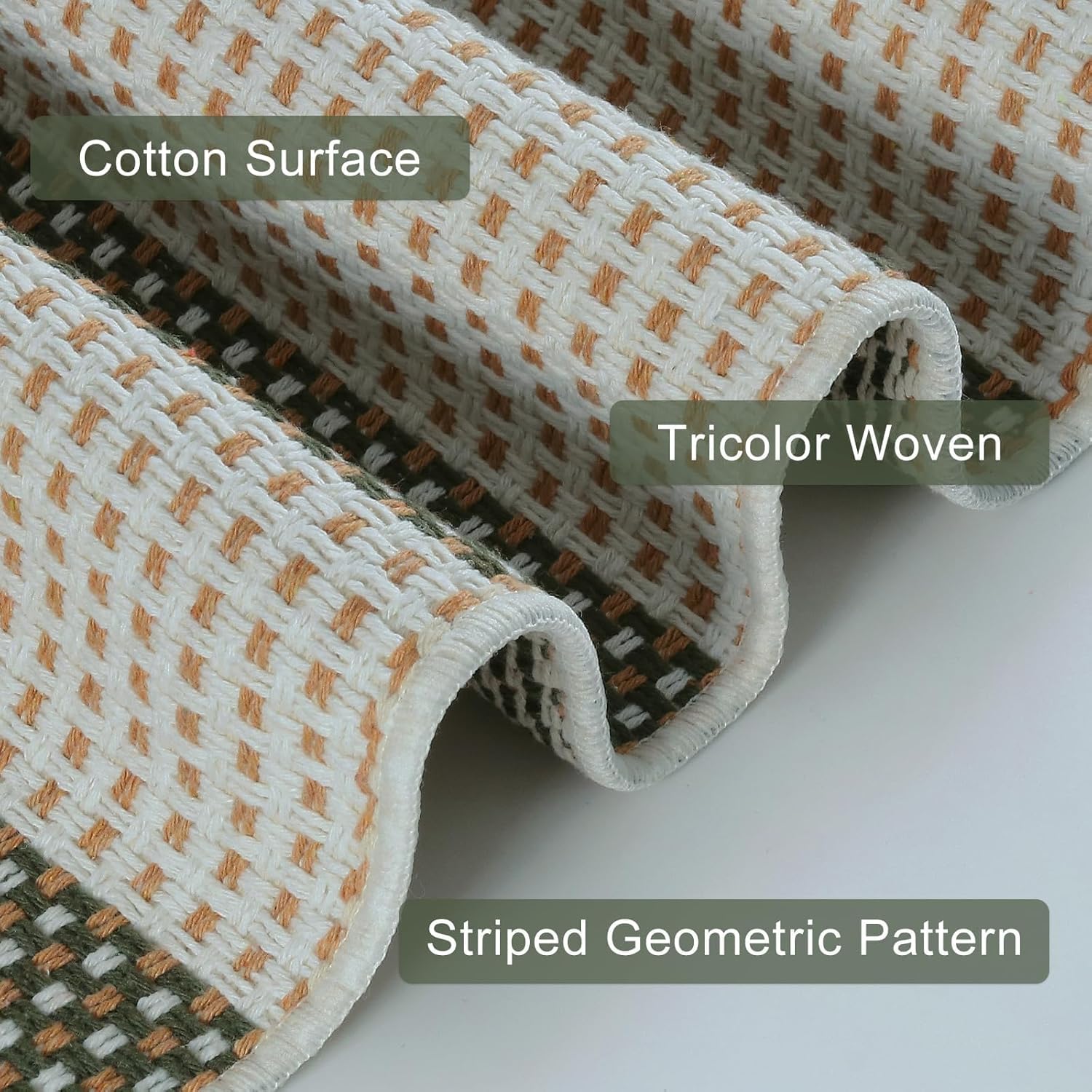 - [Sturdy & Natural] Crafted from natural cotton fiber, our hand-woven rug is reliable and resistant to stain and fade, perfect for high-foot traffic areas as it keeps the shape of the rug for longer. Soft, breathable, non-shedding, and eco-friendly, an ideal option for indoor and outdoor.
