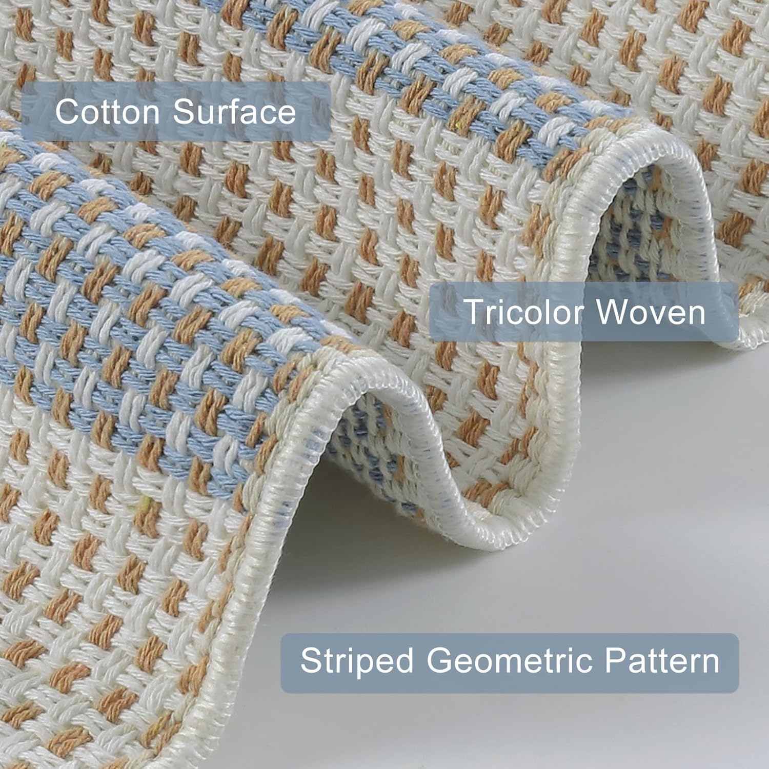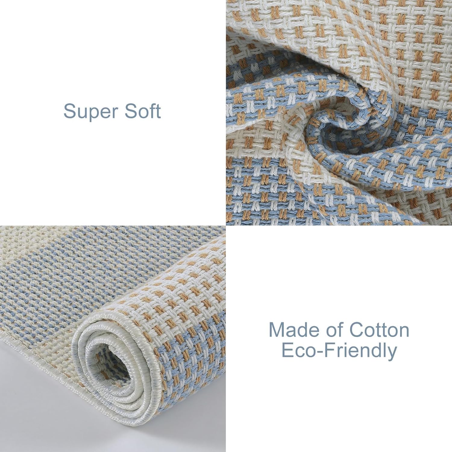 - [Sturdy & Natural] Crafted from cotton blend fiber, our hand-woven rug is reliable and resistant to stain and fade, perfect for high-foot traffic areas as it keeps the shape of the rug for longer. Soft, breathable, non-shedding, and eco-friendly, an ideal option for indoor and outdoor