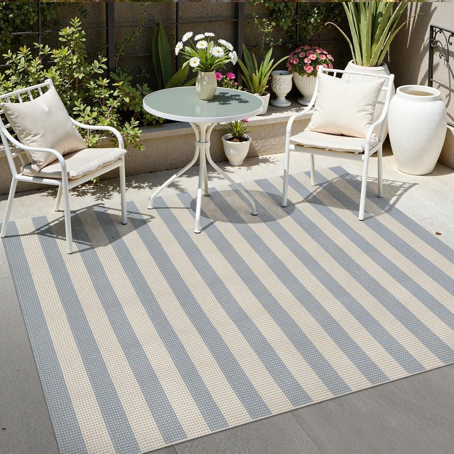 - [Easy to Care] Our outdoor patio rug is machine washable, making it perfect for busy households with pets or children. Machine wash in cold water (do not add bleach) and hang dry. Use a vacuum without a beater bar for daily care.