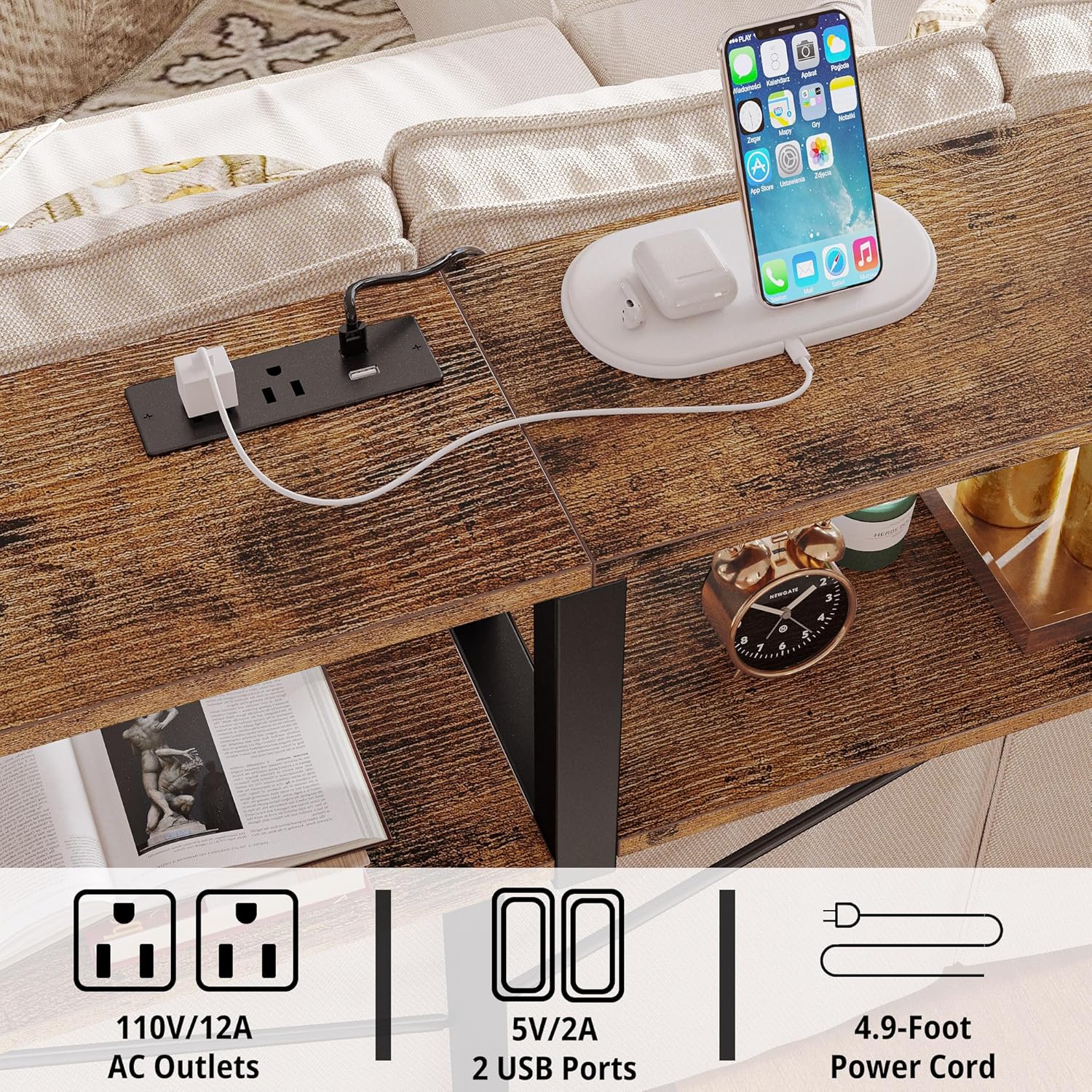 - Sofa Table with Outlets: The console table comes with built-in 2 plug outlets and 2 USB ports. You can choose to place the power outlets on the left or right side of the table as needed. Allows you to charge your phone, tablet, laptop, and other electronic devices within easy reach