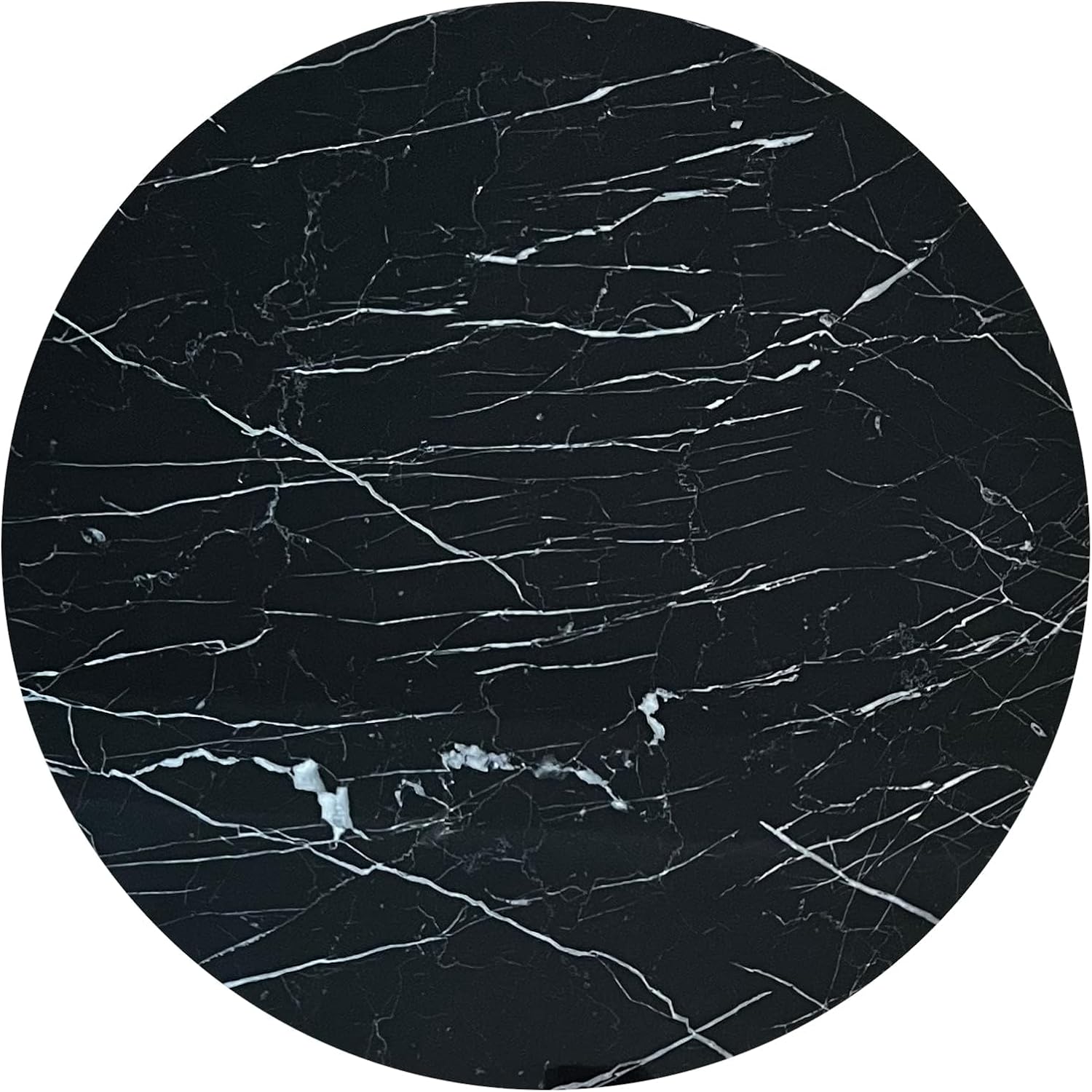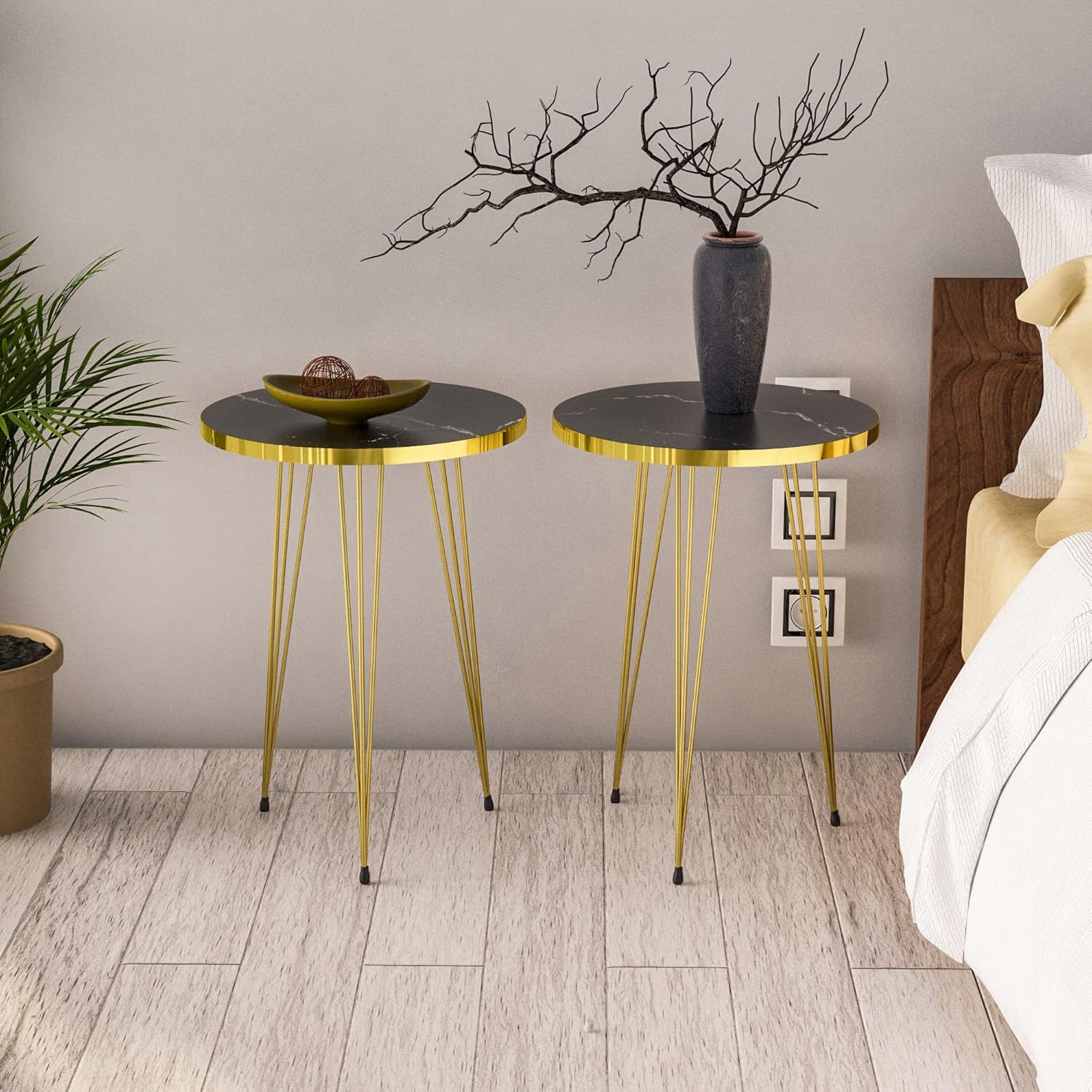 PAK HOME Set of 2 End Tables Round Wood Sofa Side Coffee Tables for Small Spaces, Nightstand Bedside Table with Metal Legs for Bedroom, Living Room, Office (Black Marble High Gloss/Gold Legs)