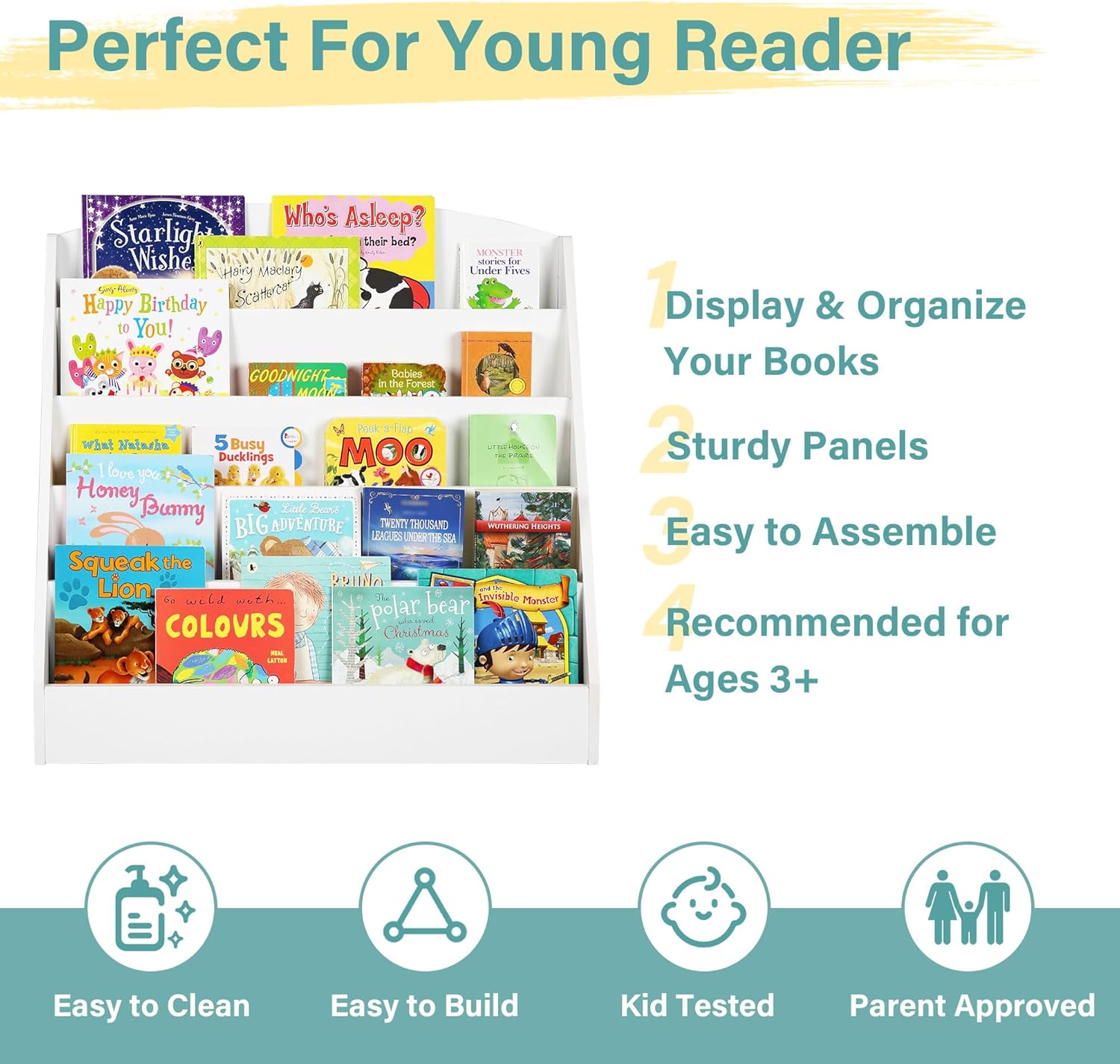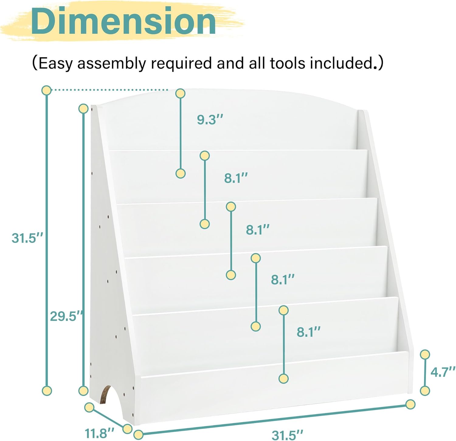 - 【STIMULATES CURIOSITY】- At 31.5" x 12" x 31.5" (L x W x H), this white book shelf has a right height for children, allowing them to easily view and pick up their favorite books. Books can be displayed by front cover instead of the spine, making it easier for kids to choose books, fueling their love for reading.🪄📚