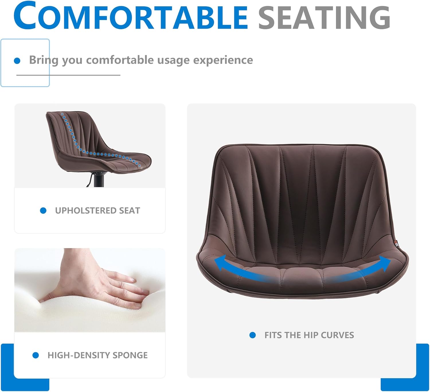 - Superior Seating Experience : Designed with simple curves from back to seat, the fully upholstered barstool's seat cushion is filled with soft and high-desity foam. The structure is solid and stable enough
