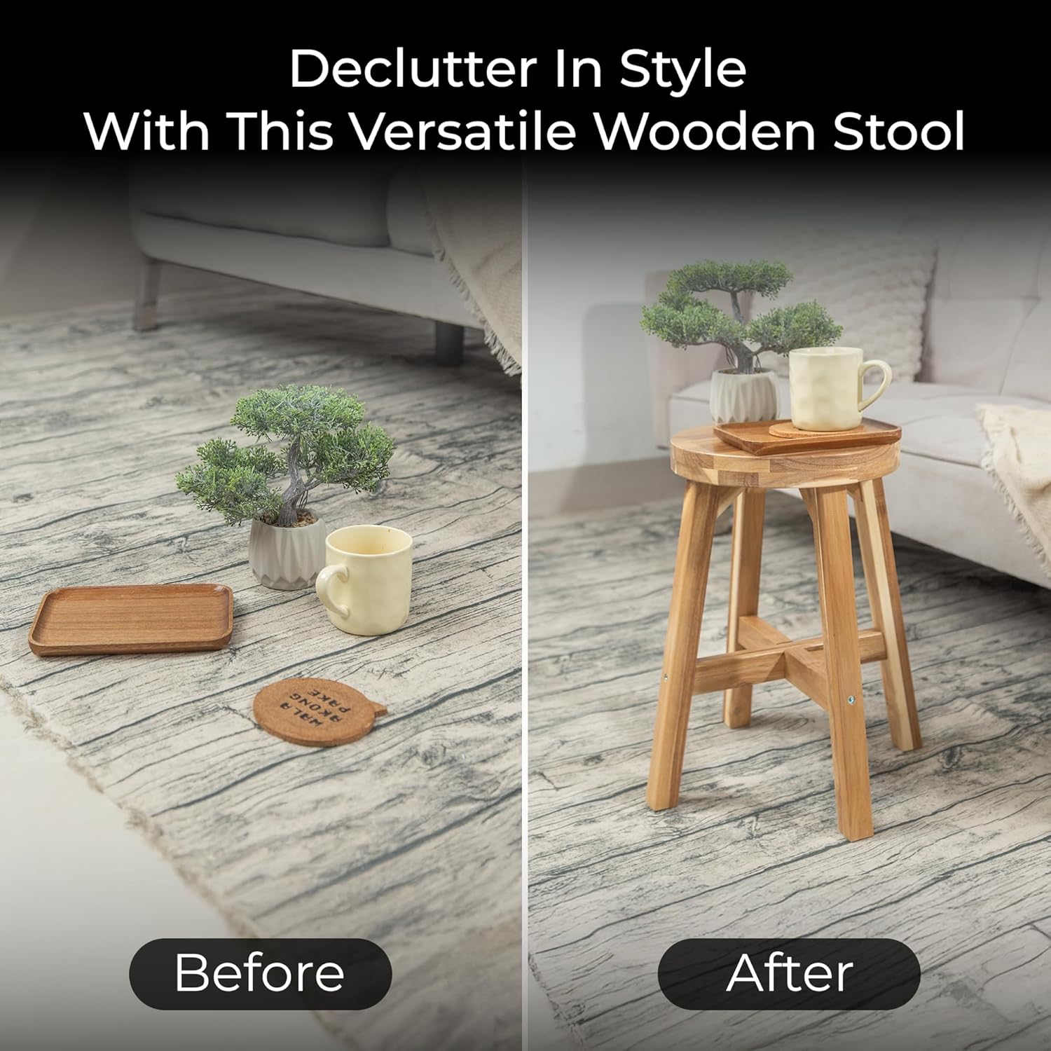 - Durable Acacia Wood Construction – Made from sturdy acacia wood, this wooden stool offers long-lasting durability and a natural aesthetic.