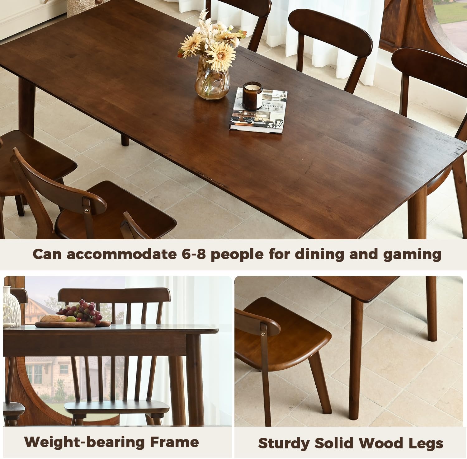 DELAVIN 70.8" Large Solid Wood Dining Table for 6-8 People, Mid Century Modern Rectangular Oak Kitchen Table, Farmhouse Dining Room Table, Easy Assembly, Walnut