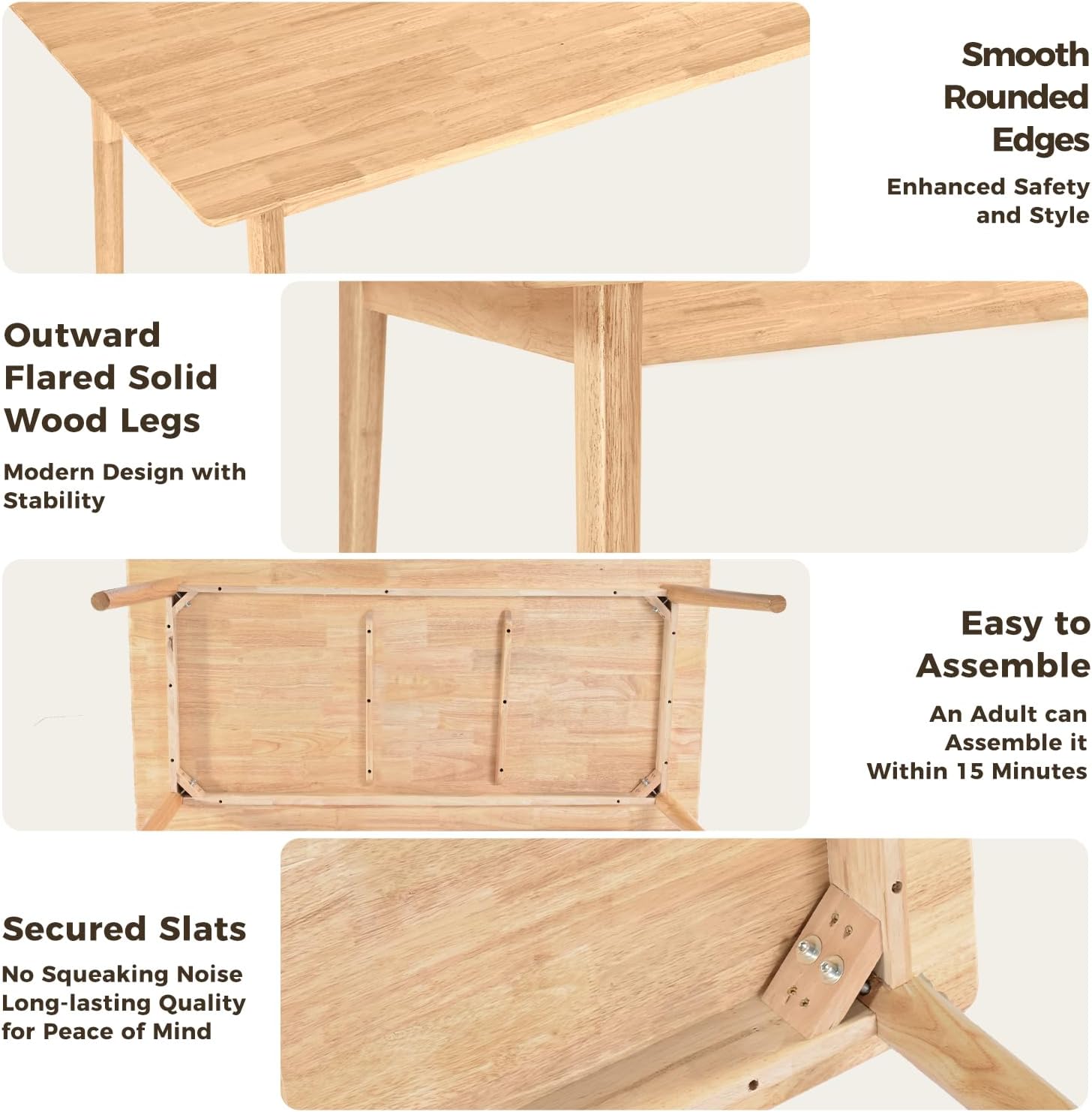 - Easy to Assemble: Modern dining tables are easy to install, with packaging containing easy-to-read instructions, accompanying hardware, and all necessary tools for quick installation. The solid wood dining table can be conveniently transported in a box (excluding chairs). The special triangular structure and matching metal parts make the installed dining table more stable and less prone to overturning.