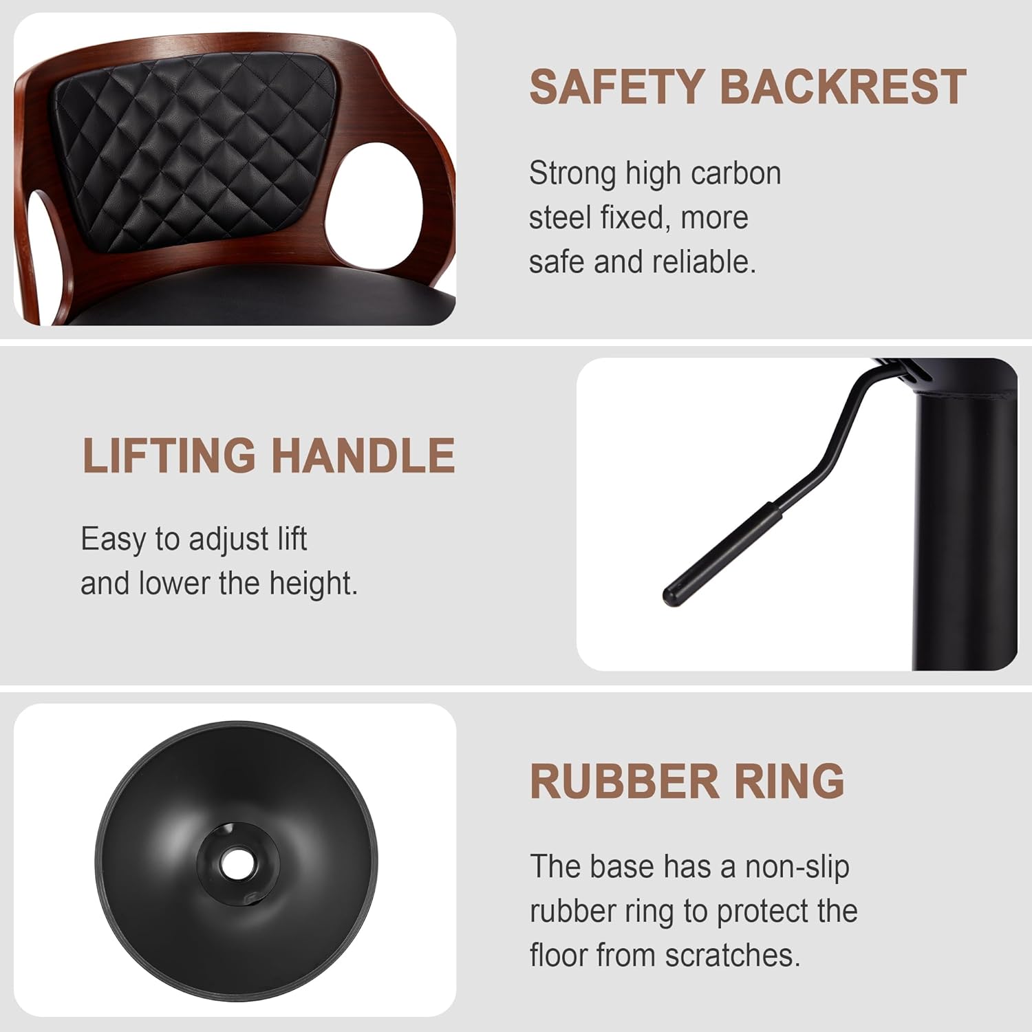 VECELO BarStools Set of 2,Counter Height Stools with Bentwood Back&Arm, Swivel Barstools,PU Leather Kitchen Island Stools, Adjustable Height Bar Chairs for Club Pub Dining Room,Black