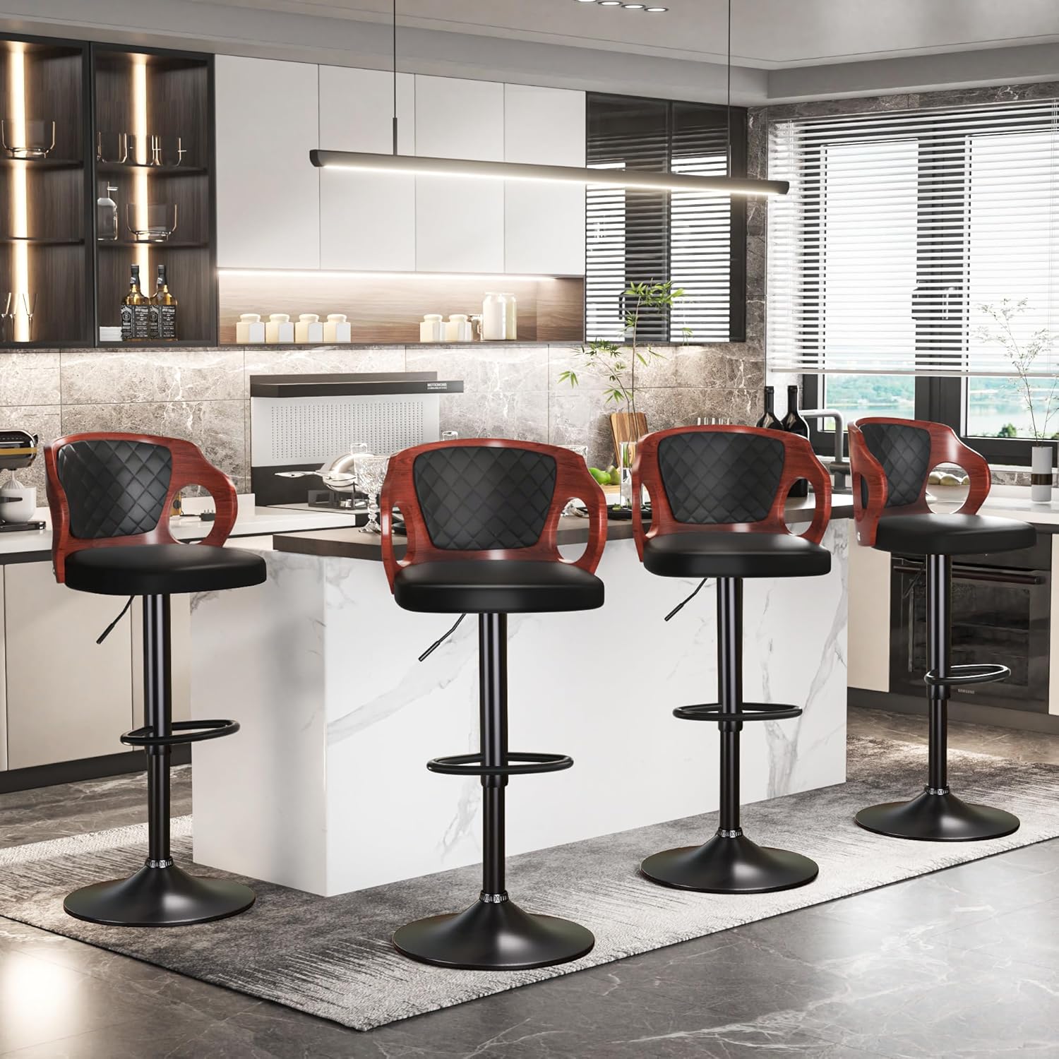 - 【Modern Style Design】: With a combination of bentwood backrest, circle arms and premium faux leather, these bar stool chairs will add a casual and unique sense of aesthetics to your designated places. The simple and chic overall style also makes it a luxury choice for home and pub. VECELO island barstool is also suitable for dining room, kitchen island, bar club, hotels and malls.