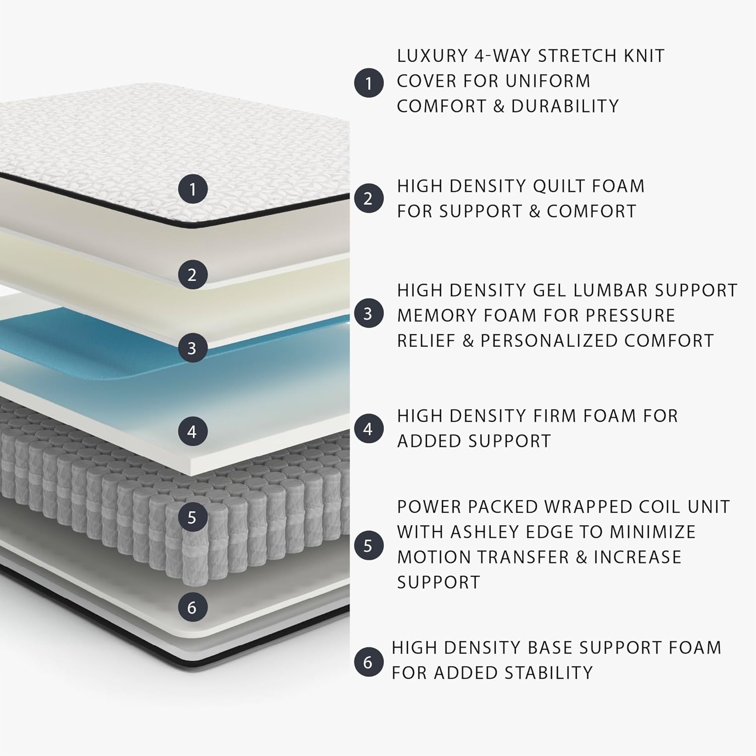 - QUALITY MADE: Packed inside are layers of support foam and gel memory foam. Power packed wrapped coils support you night after night