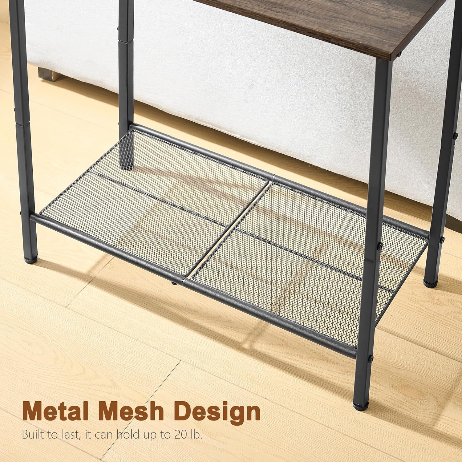 Hoctieon 2 Tier End Table, Sofa Side Table, Narrow Side Table with Storage, Slim Nightstand for Small Spaces, Metal Frame, for Living Room, Bedroom, Sofa Couch, Hall, Grey