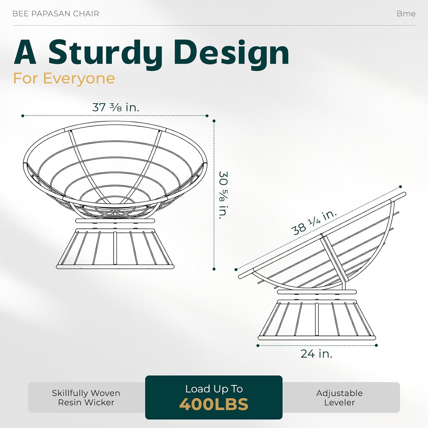 - 360 DEGREE SWIVEL PAPASAN CHAIR: The papasan chair frame is made of solid metal and expertly woven resin wicker; 360 degree swivel papasan chair base has a smoothly rotating structure without noises and friction; Five levelers protect your floor and are easily adjustable for stability of wicker papasan chair