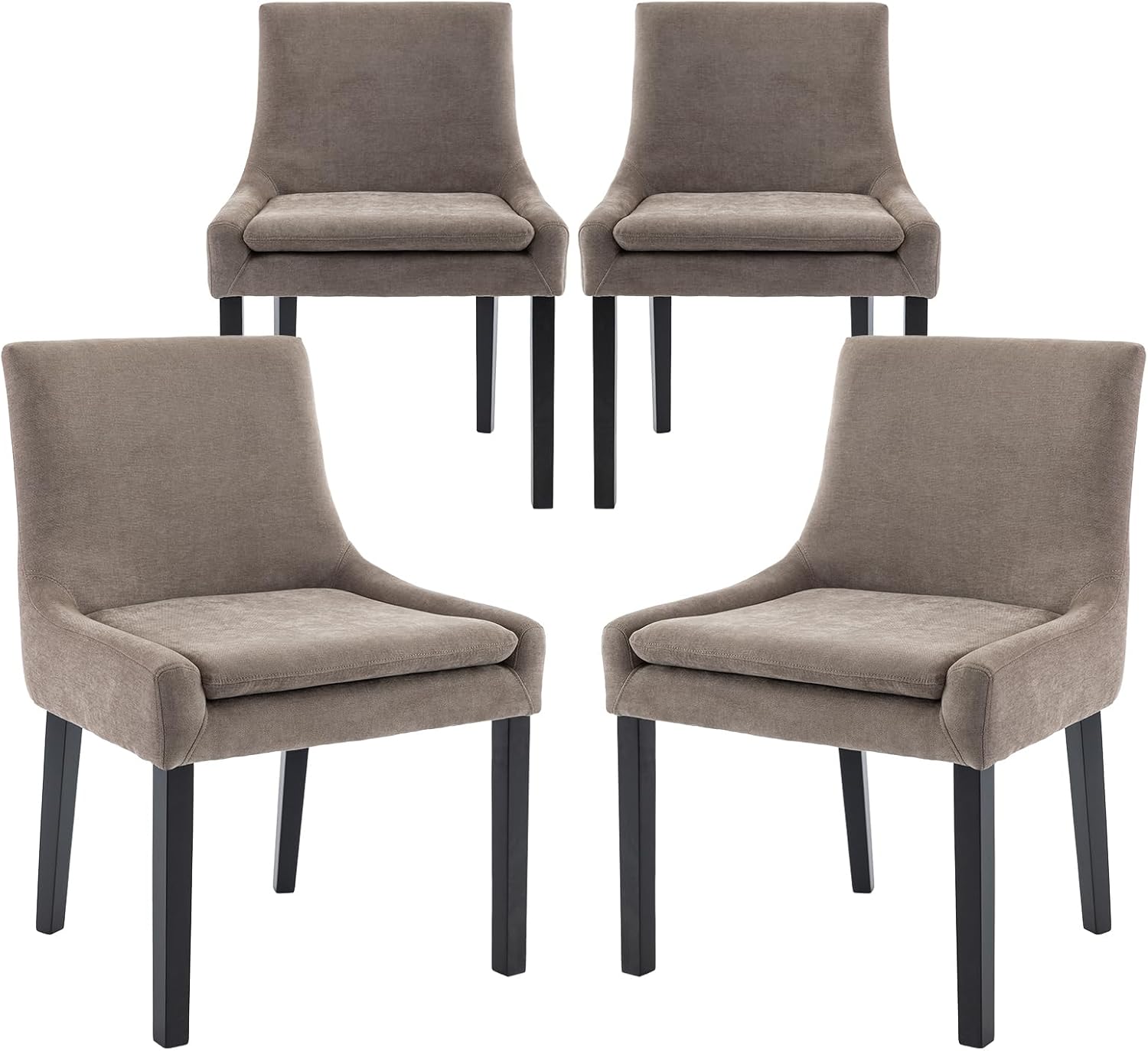 COLAMY Modern Dining Chairs Set of 4, Upholstered Corduroy Accent Side Leisure Chairs with Mid Back and Wood Legs for Living Room/Dining Room-Camel