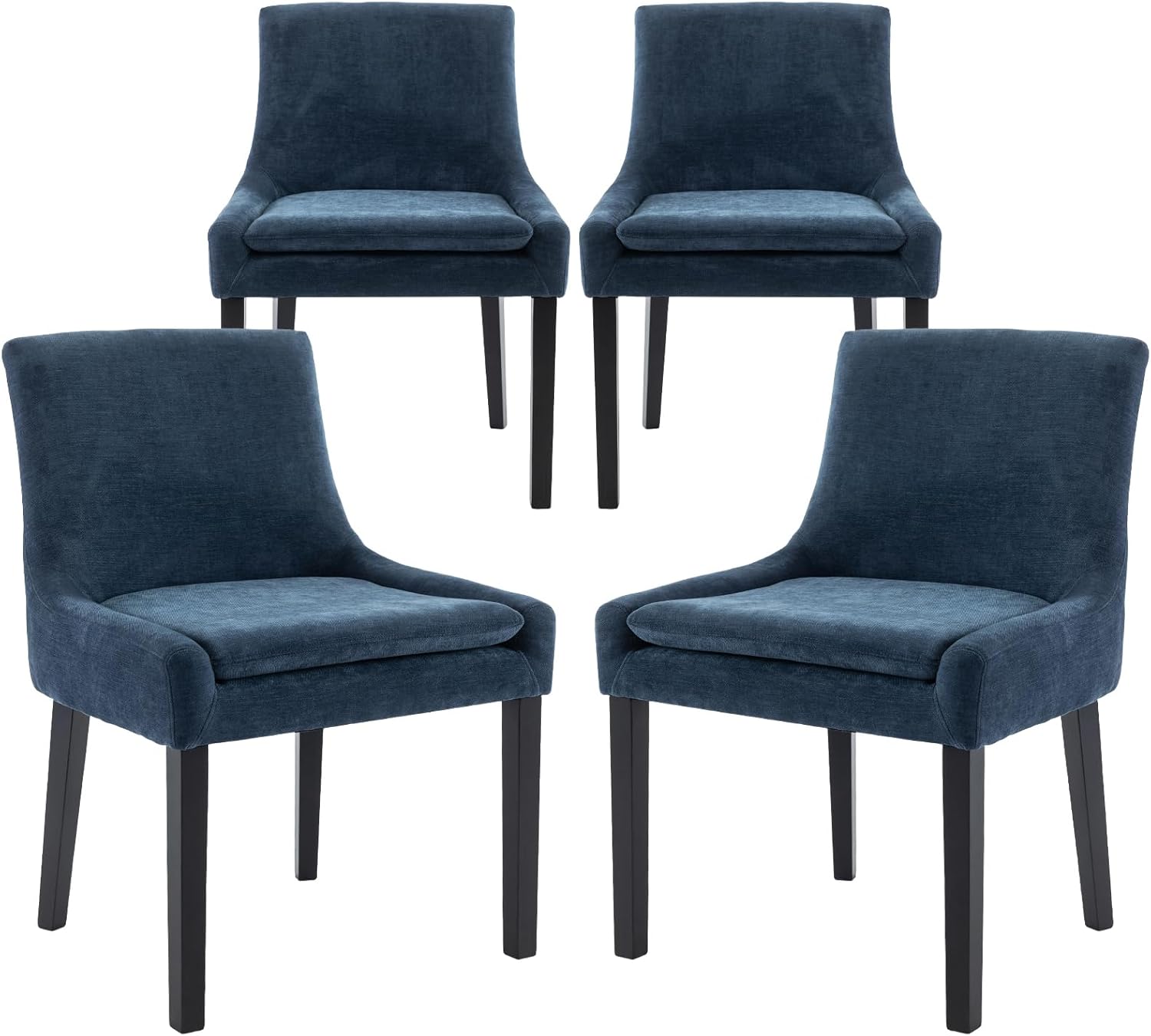 COLAMY Modern Dining Chairs Set of 4, Upholstered Corduroy Accent Side Leisure Chairs with Mid Back and Wood Legs for Living Room/Dining Room-Blue