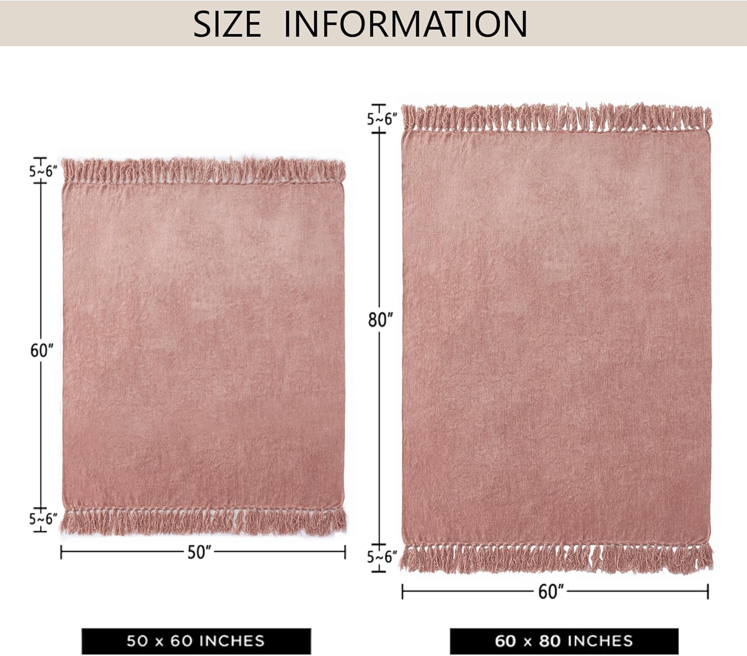 Chenille Throw Blanket for Couch 60"X 80" Twin, Soft Cozy Throws with Fringe Tassel for Bed Sofa Chair Cover, Lightweight Knitted Decorative Boho Blankets for Living Room, Dusty Pink