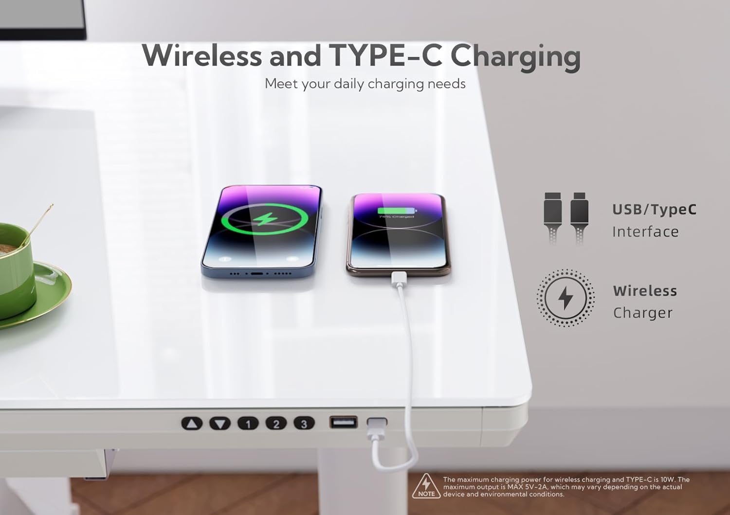- Wireless & TYPE-C Wired Charging: This desk integrates both wireless and TYPE-C wired charging methods. Wireless charging is more convenient and quick, while wired charging offers broader compatibility to meet your daily charging needs (Note: Some charging cables with encryption protocols may not be compatible).