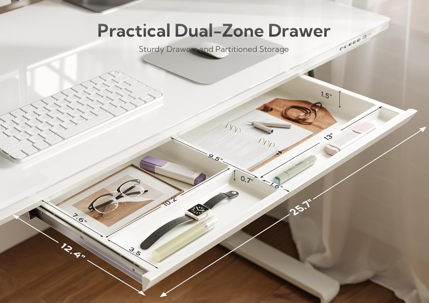 - Partition Drawers: The built-in pull-out drawers provide a hidden storage solution for easy desktop organization, giving you more space and less clutter