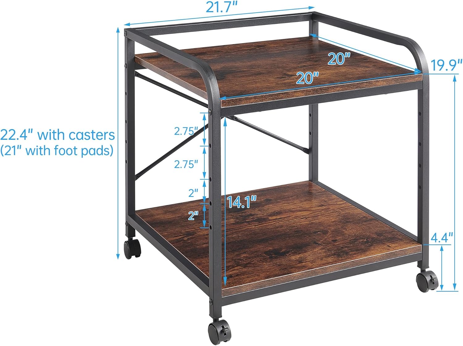 - 【Large Size with Plenty of Storage Space】With spacious 20" x 20" square shelves and a robust weight capacity of 100lb on each tier, this printer stand is perfect for accommodating large and heavy printers, scanners, and other bulky equipment. The two-tier storage design provides ample space for organizing reams of printing paper, ink cartridges, and various office supplies.