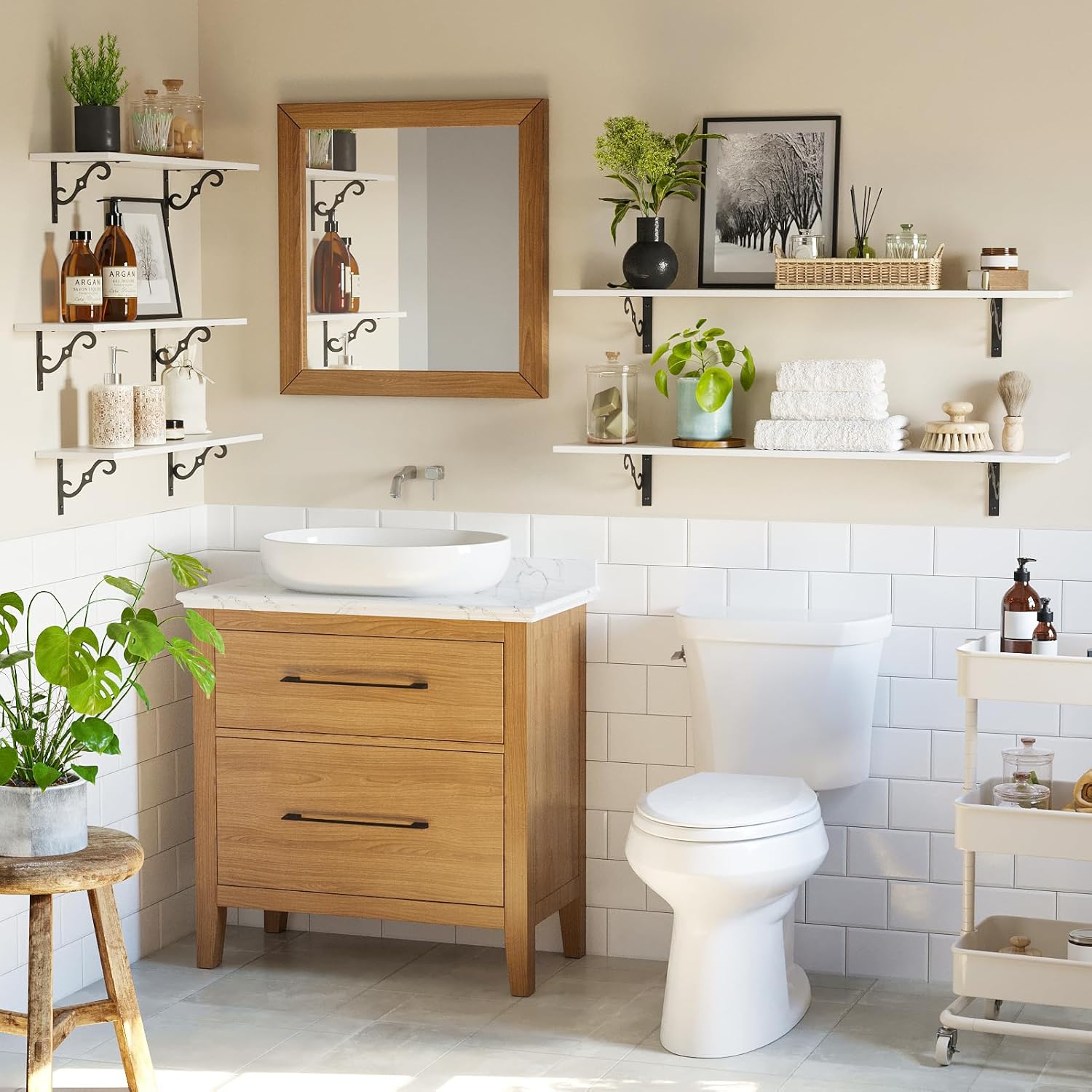 - 【Well Made】Made of premium particleboard and expertly designed metal brackets, sturdy and durable. Thicker brackets bring added stability and stronger load-bearing capacity(up to 22lbs), supporting the wood shelves without sagging over time. All edges are well-finished for smoothness