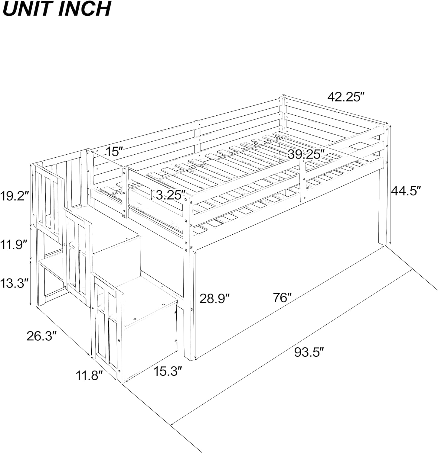 - 【Storage Space】:The loft bed is equipped with 2 storage steps of different sizes, this design fully explored the options to optimize space-saving. Allowing toys and books to be kept away neatly when they are not in use, keeping the bedroom of your child clean and tidy.