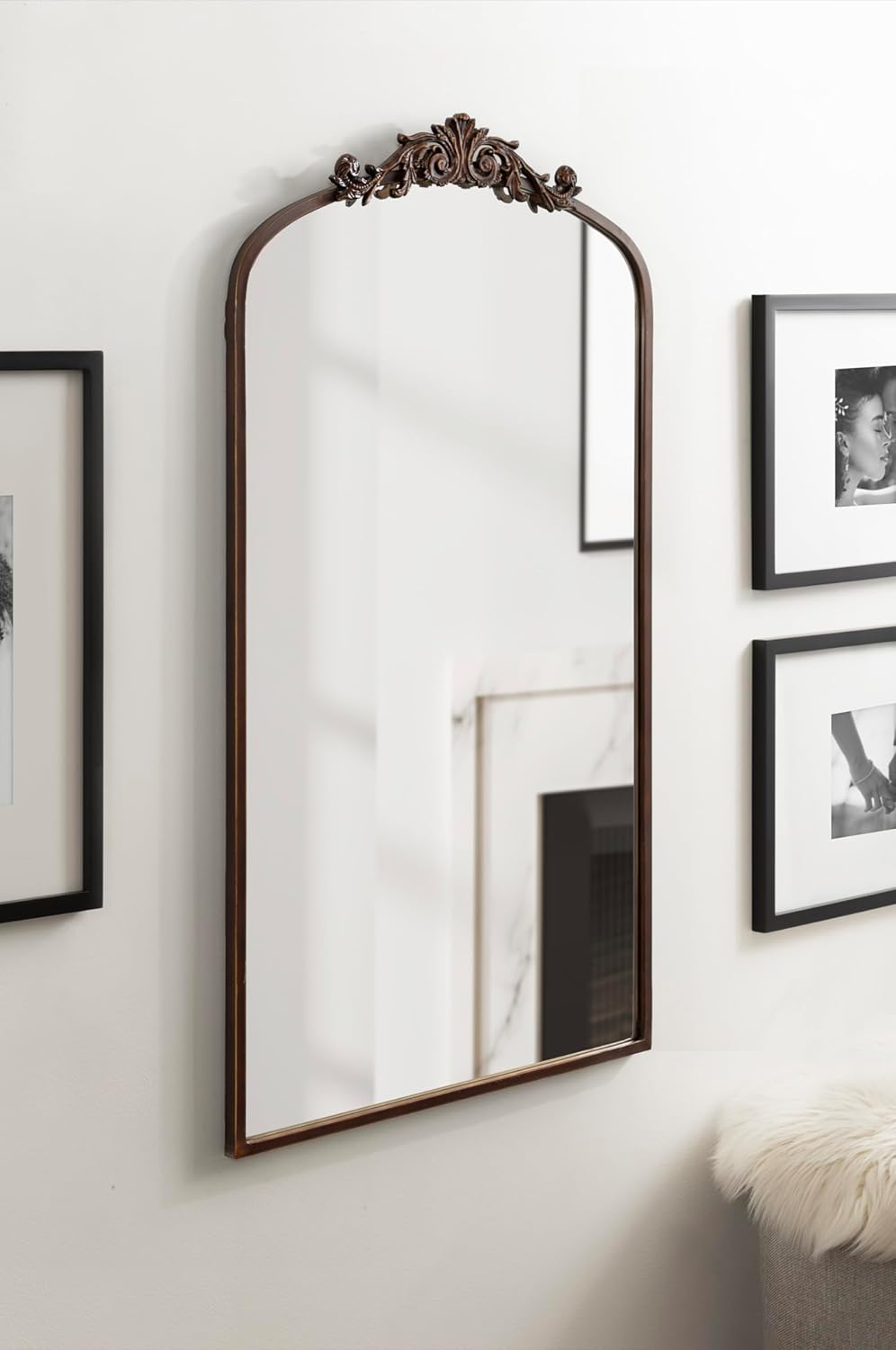 Kate and Laurel Arendahl Glam Arched Tall Panel Mirror; 24 x 42; Bronze; Traditional Baroque Large Body Wall Mirror with Ornate Garland Inspired Crown