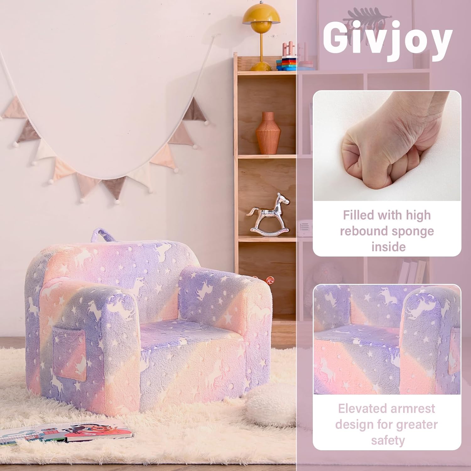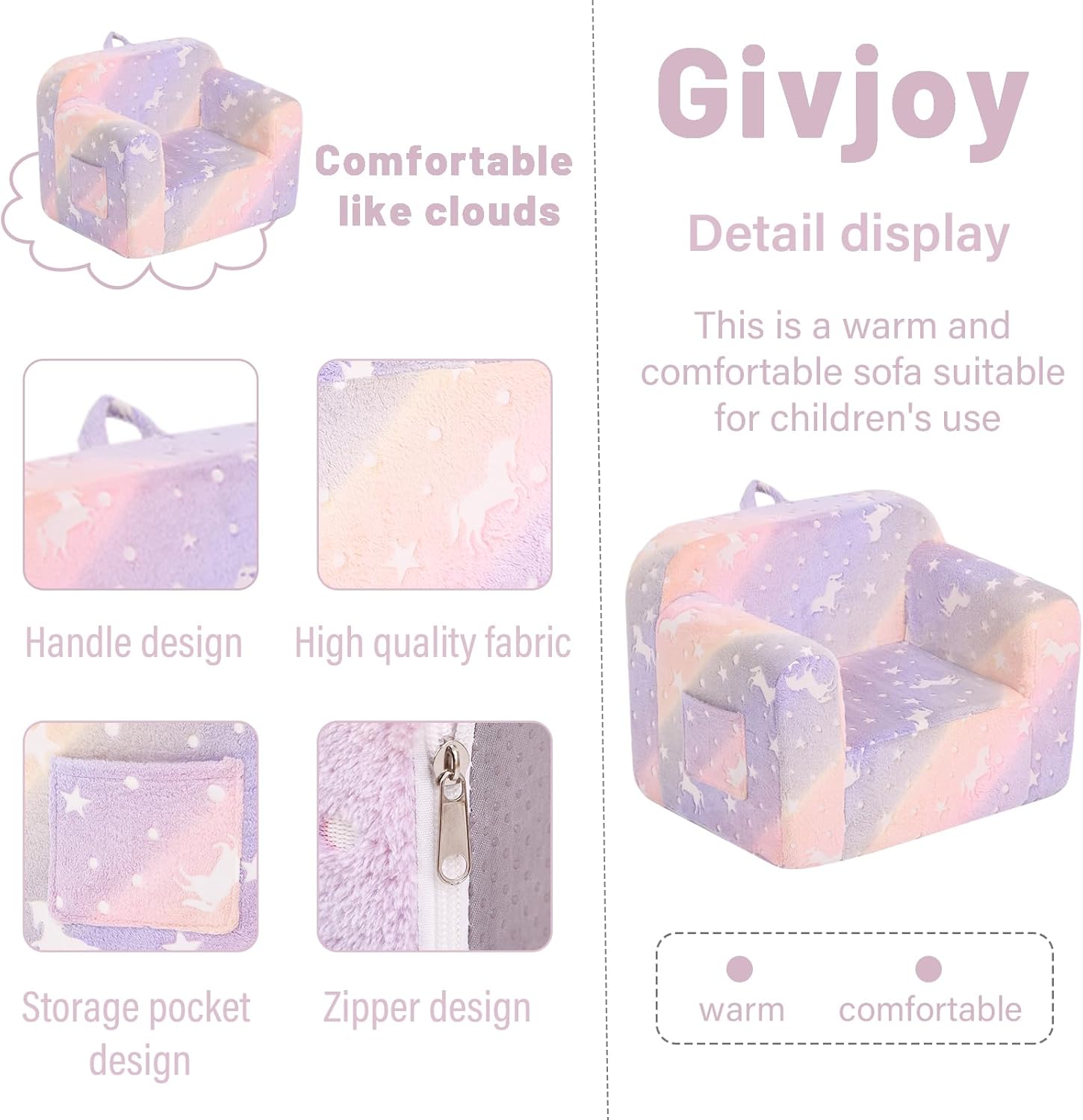 - 【Unique Present for Boys and Girls】The children's sofa couch is a wonderful present for all kids & toddlers on Birthdays, Christmas, or other occasions! Your child will find this small kids' couch to be the perfect spot for relaxing, reading, playing, or enjoying their favorite TV shows. Meanwhile, with both modern design and fashionable colors, this small couch can fit any room and add great vitality to your house.