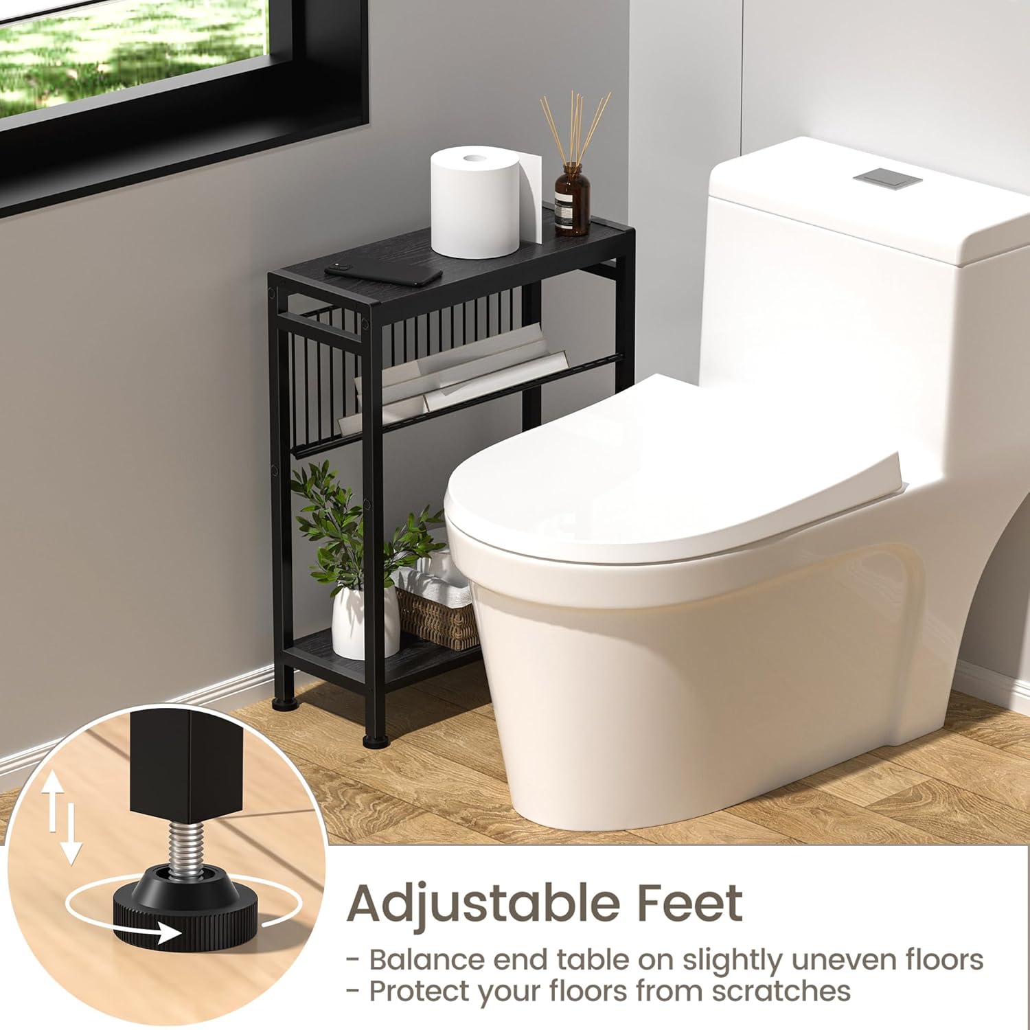 End Table Set of 2 for Small Space, 3-Tier Narrow Side Table with Magazine Holder,Slim Nightstand, Skinny Snack Couch Table in Living Room, Bedroom Study and Balcony (Black)