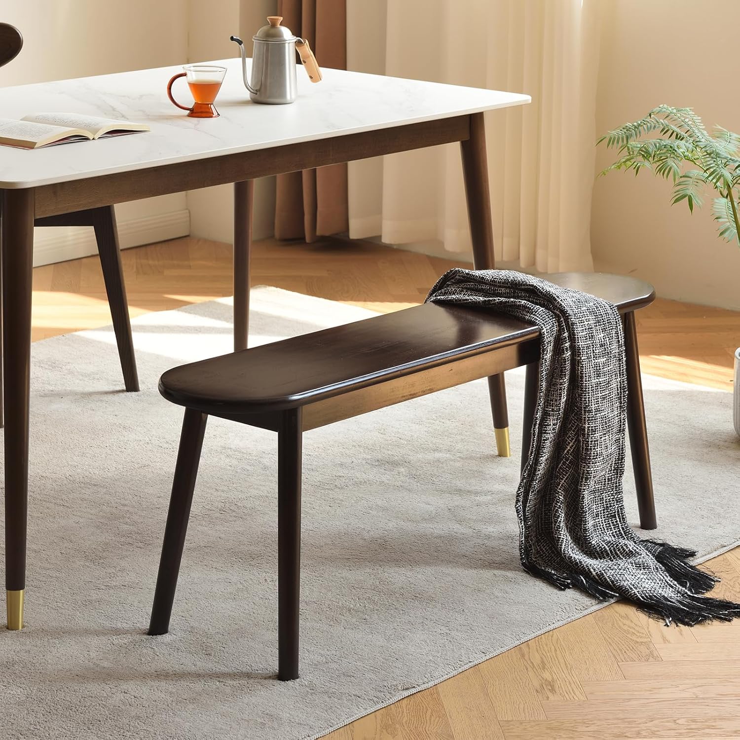 Walnut Solid Wood Bench, 39.4" L – Narrow Mid-Century Wooden Benches for Entryway, Kitchen, Dining, Bedroom & Shoe Storage