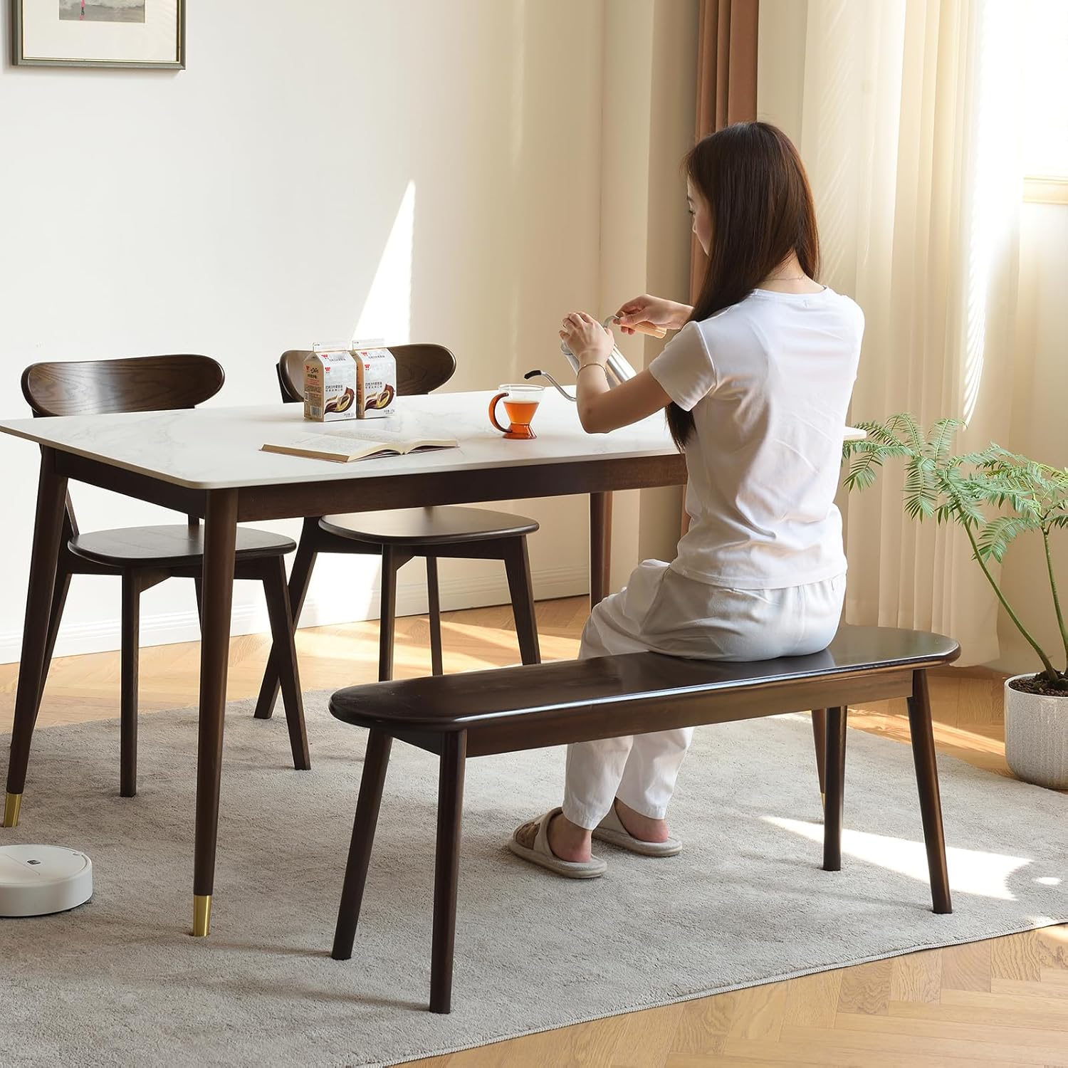 - 【Premium Natural Solid Wood】 Our dining bench is made from 100% solid wood . Perfectly displaying the natural color of the wood, simple and aesthetic. High-quality material leaves you no worry about using reliability.