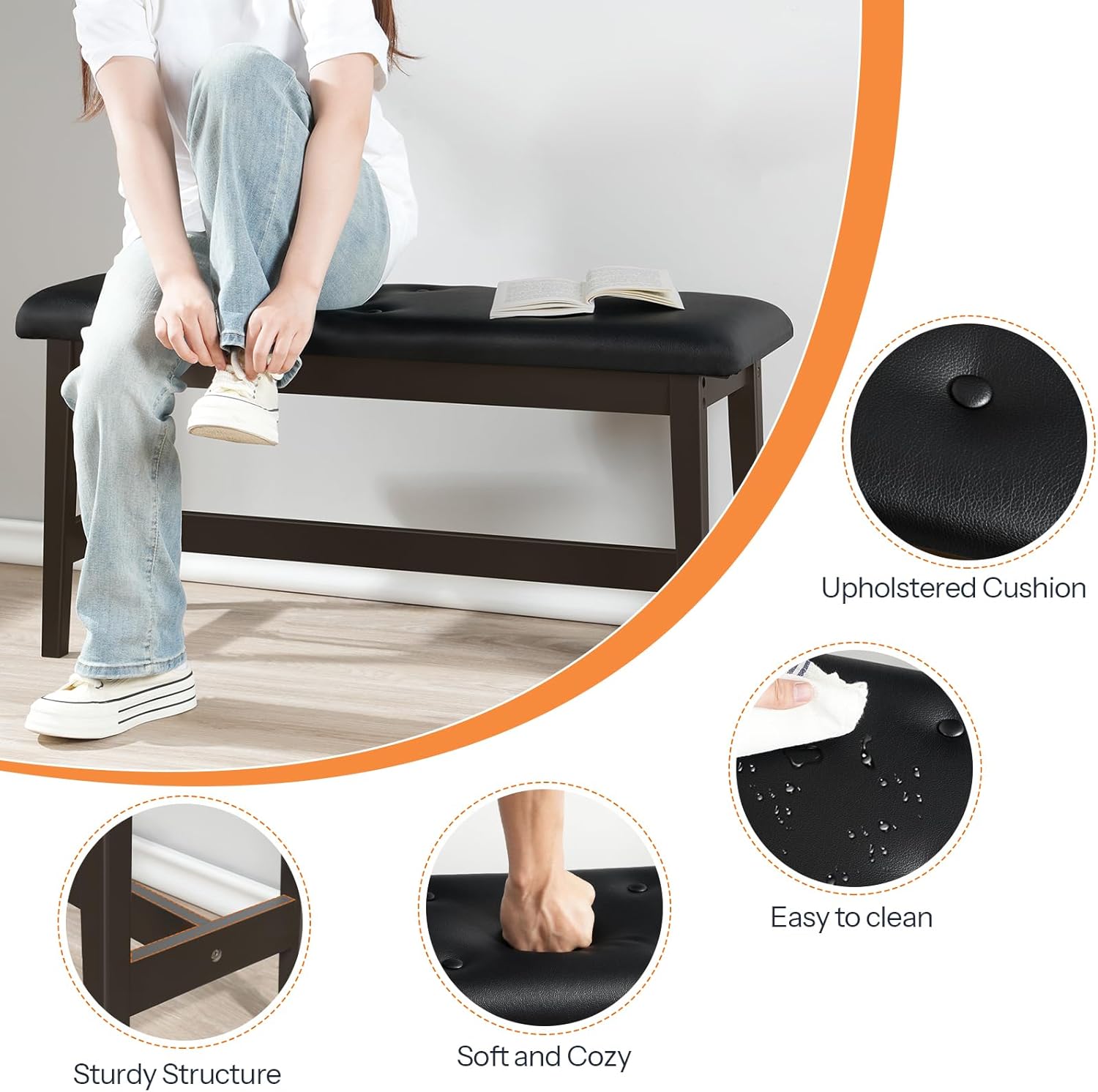 - Upholstered Cushion: The shoe bench is crafted from soft PU leather padded with high-resilience sponge, ensuring durability and resilience even when used for extended periods. This entryway bench provides strong support and optimal comfort